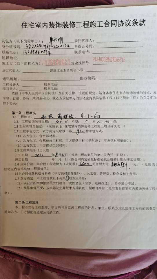 | 裝修面積 | 99.86m2 | 投訴人手機(jī) | 1836804**** | 被投訴人手機(jī) | 1811985**** |
