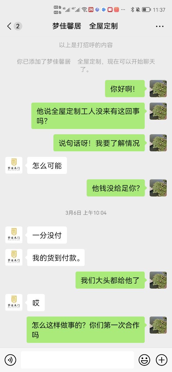 全屋定制昨日準(zhǔn)點送貨了,一萬五我也提前拿出來了墊付了,作為裝修公司責(zé)任人我想說做人做事格局大點,都不按合同來辦事,還簽什么合同?拿錢不作為,還囂張氣焰,做到人人滿意的確很難,但做到人人不滿意,就很爛了,自己應(yīng)該意識問題的根本,后續(xù)有問題我還會再來!