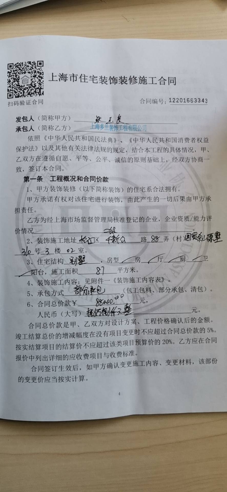 | 投訴類型 | 合同糾紛 | 投訴人 | 張** | 被投訴單位 | 上海多蘭裝飾工程有限公司 |