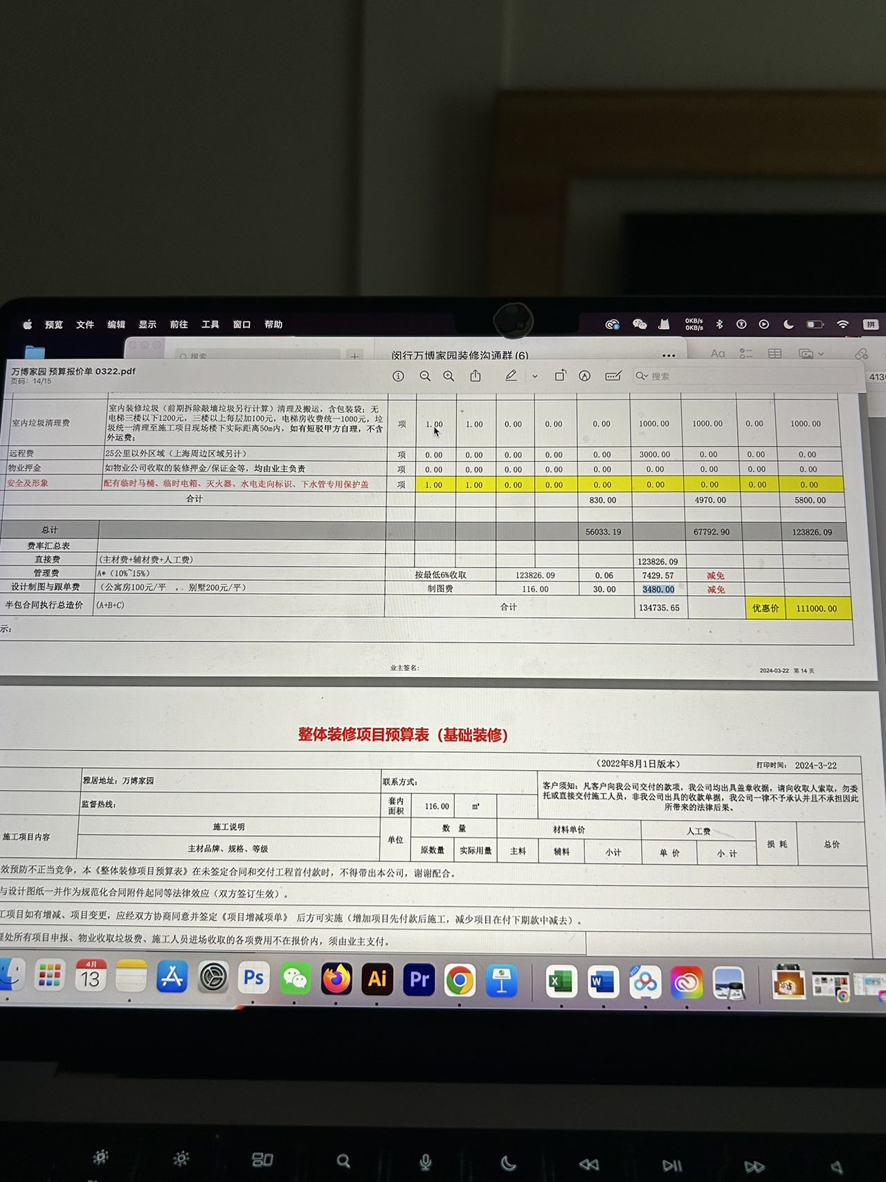 2原報價單中,裝修公司給出 設計制圖與跟單費單項3480(整合簽約價格折扣前價格),備注為:減免