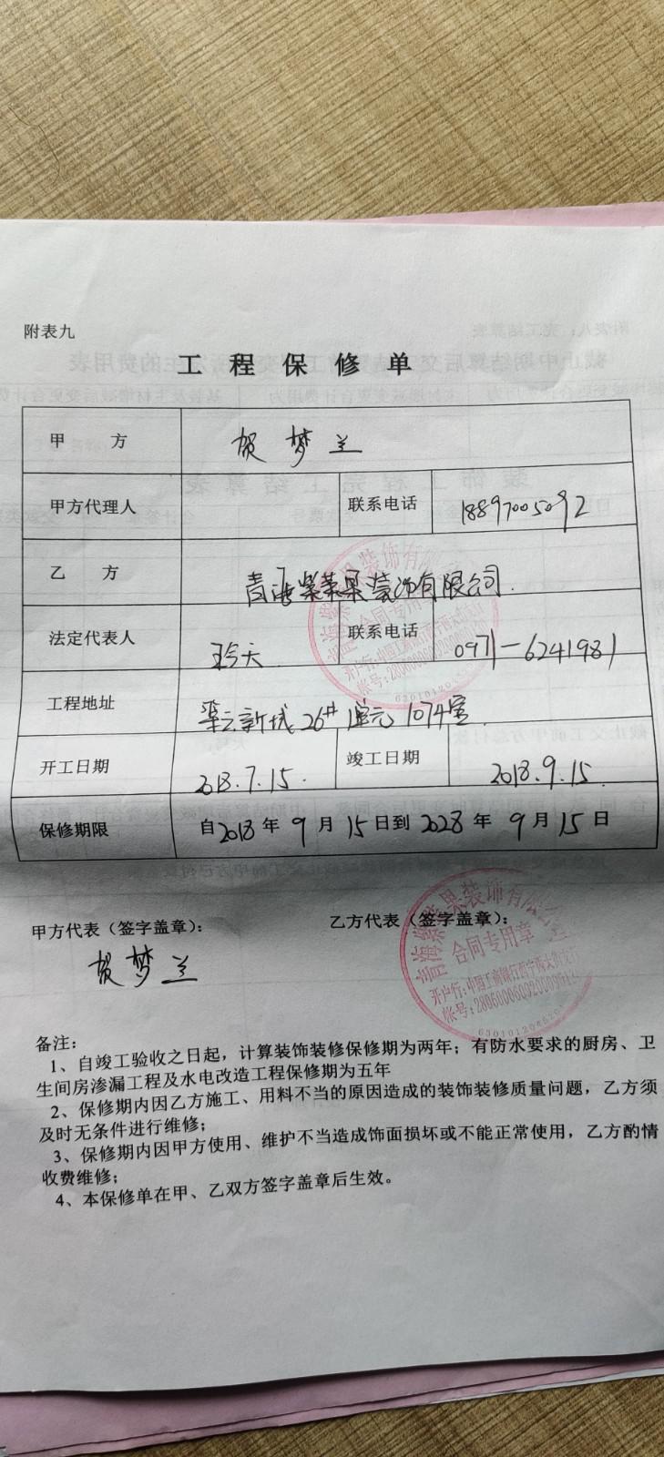 | 投訴類型 | 施工質(zhì)量 | 投訴人 | 賀** | 被投訴單位 | 青海紫蘋果裝飾有限公司 |