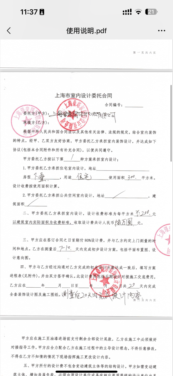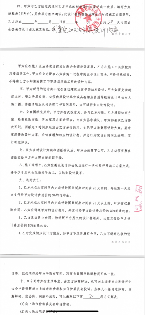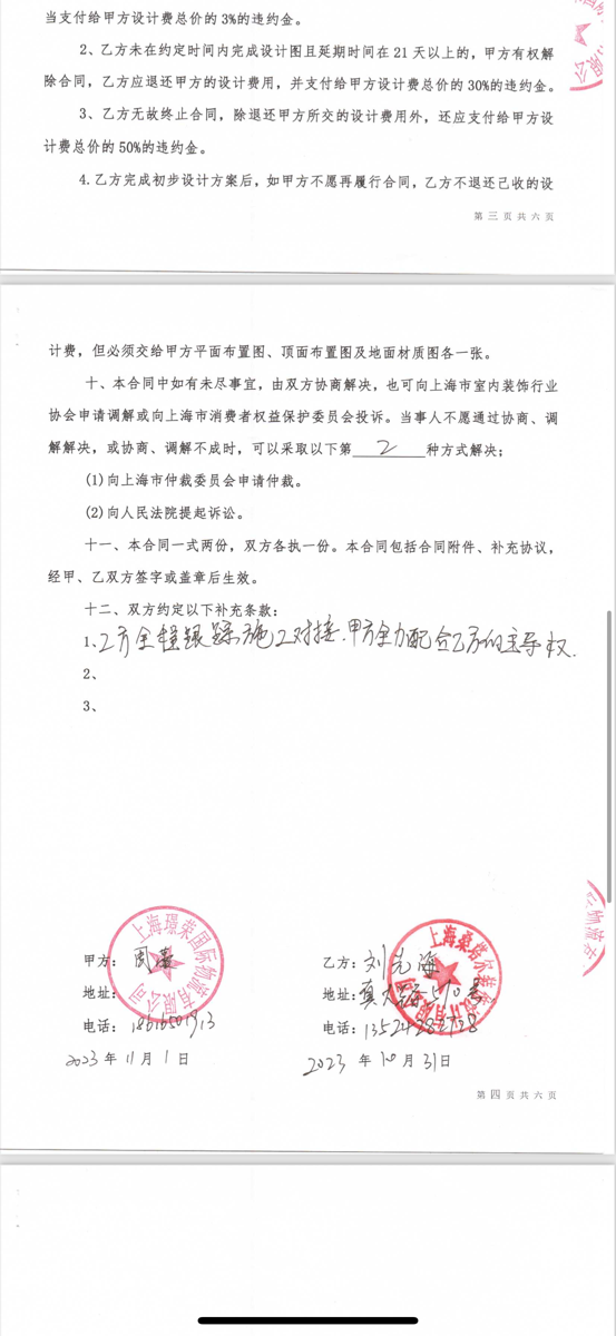 甲乙雙方于2023年11月1日簽定上海市室內(nèi)設(shè)計(jì)委托合同,于11月6日支付設(shè)計(jì)款人民幣48000元;又于2023年12月26日簽定上海市住宅裝飾裝修施工合同,于2023年12月27日支付裝修款30%人民幣216000元。
