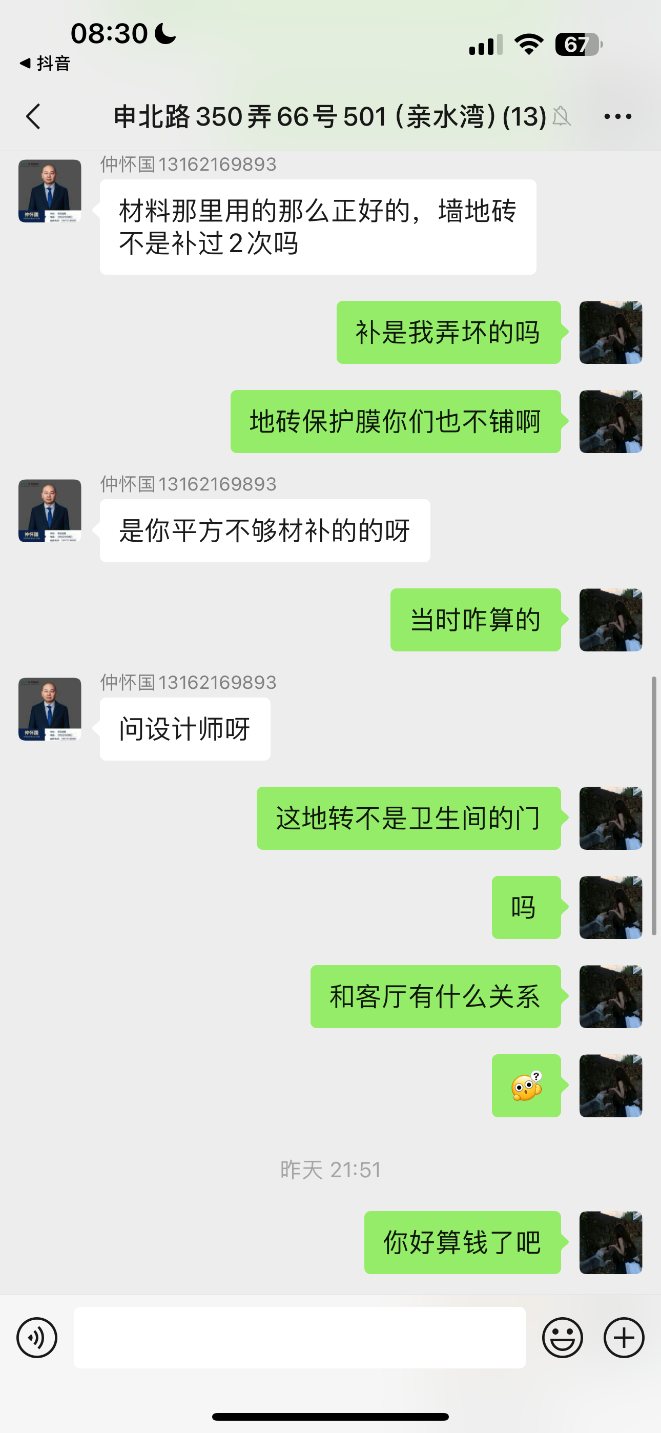 | 裝修面積 | 78m2 | 投訴人手機(jī) | 1662179**** | 被投訴人手機(jī) | 1801406**** |