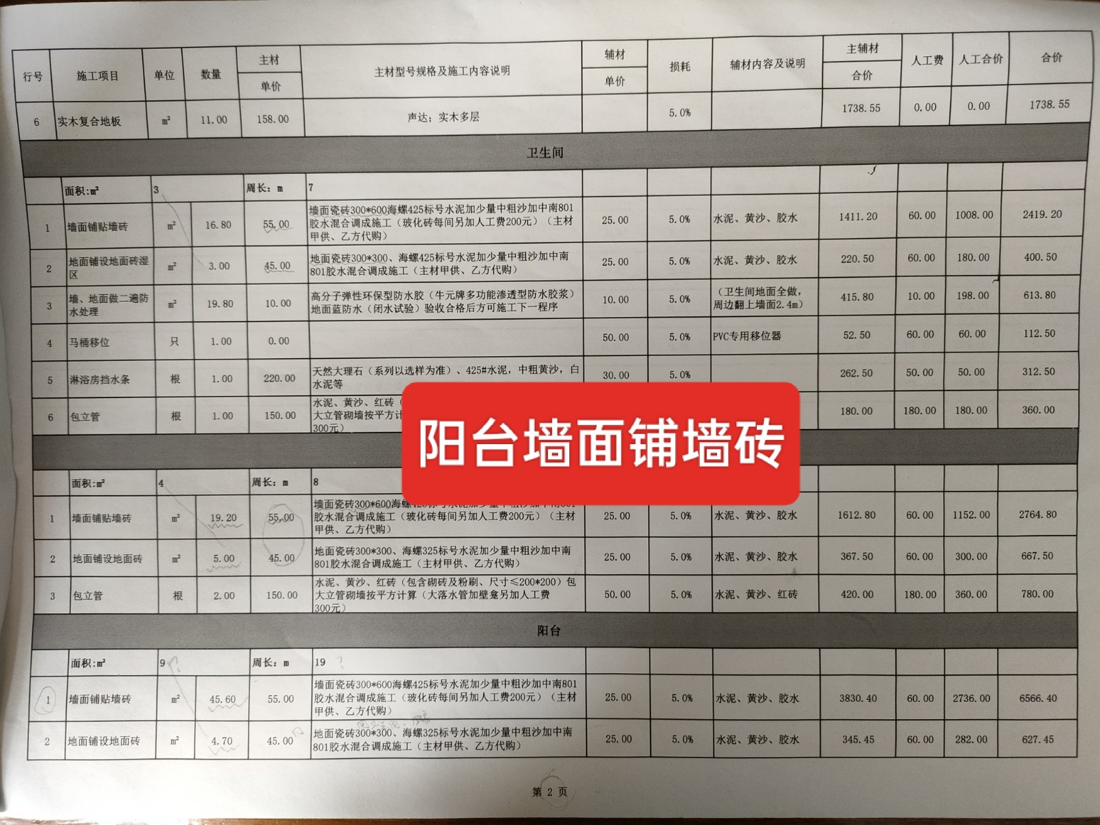(1)虛設(shè)陽臺鋪墻磚,面積超大,預收款6566.40元;