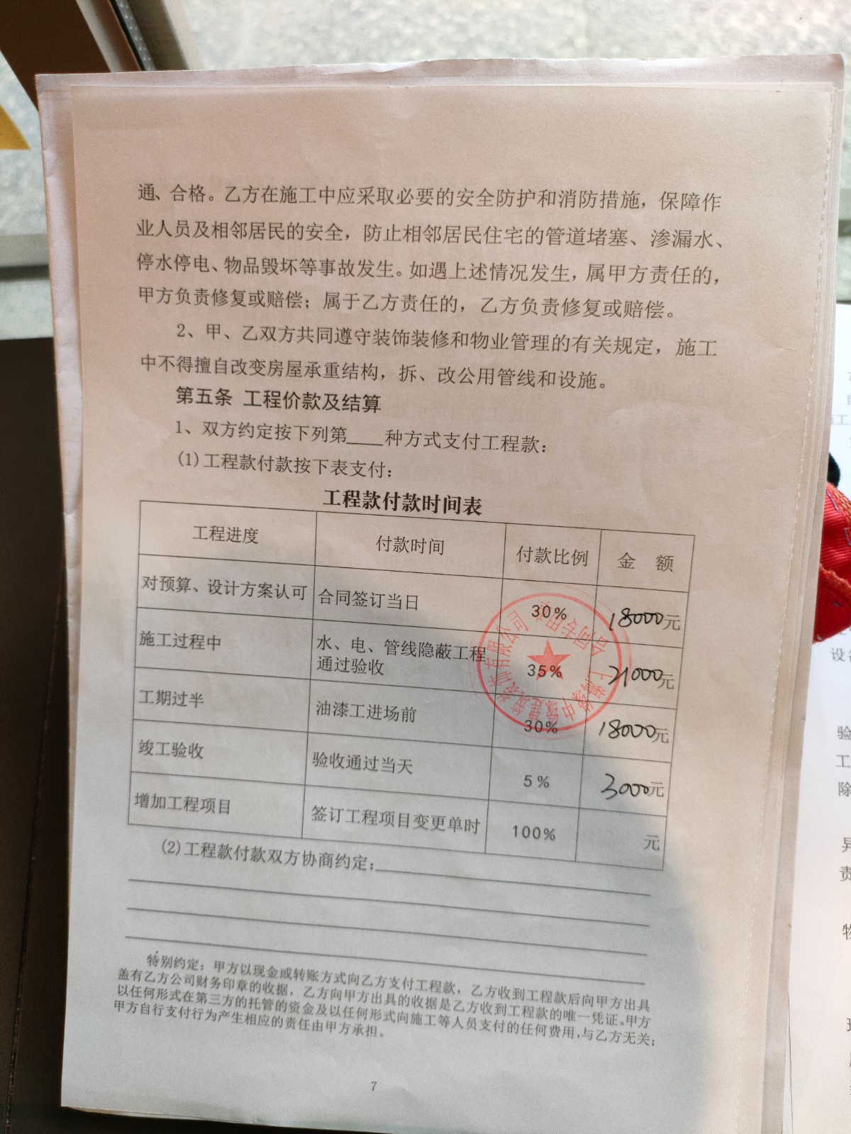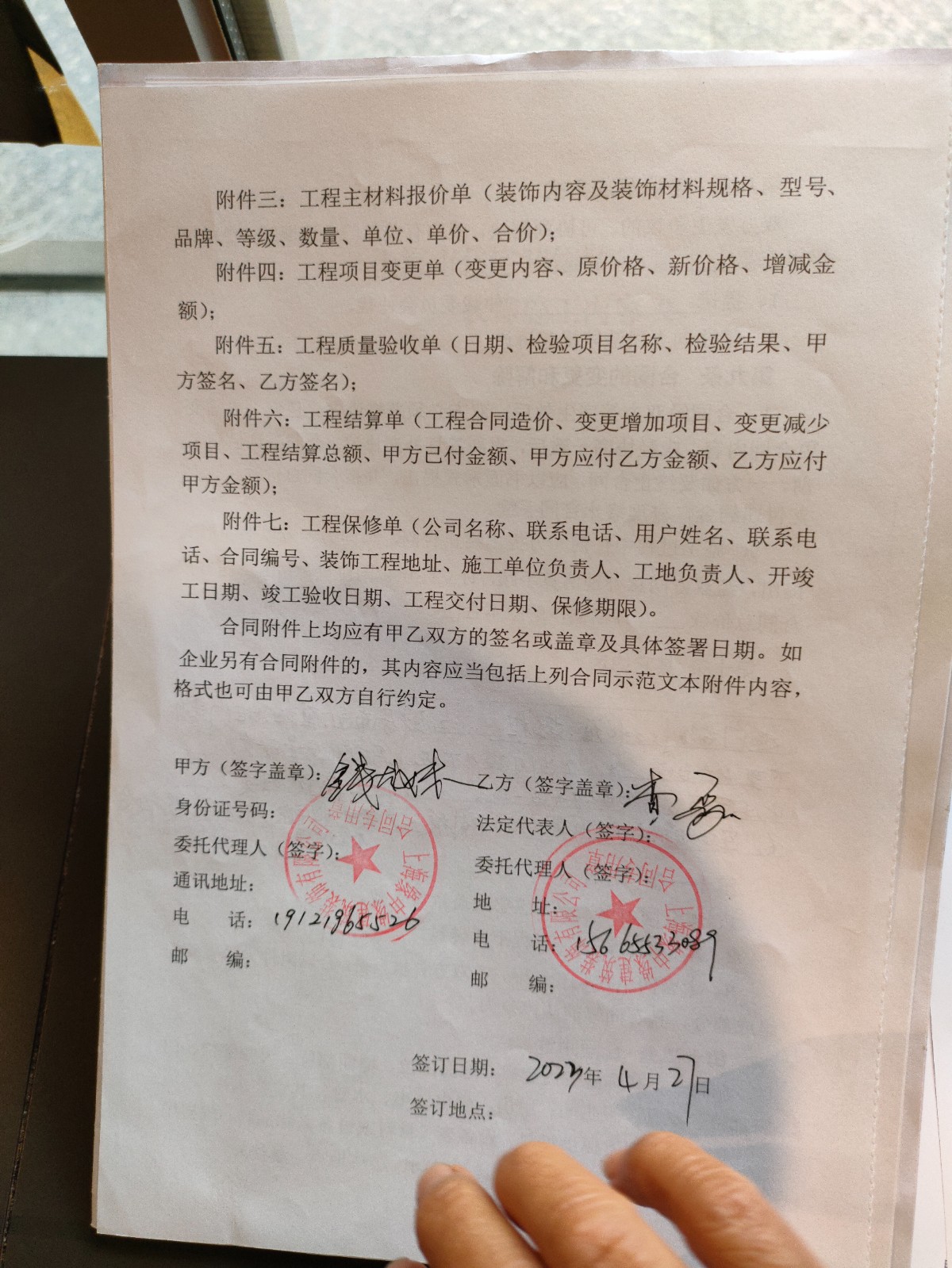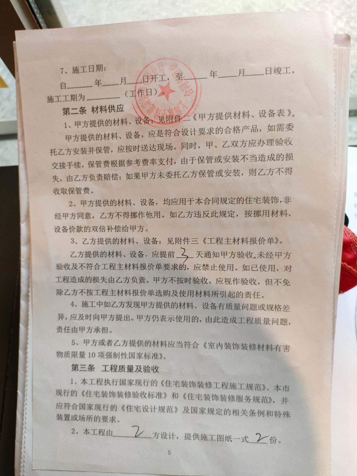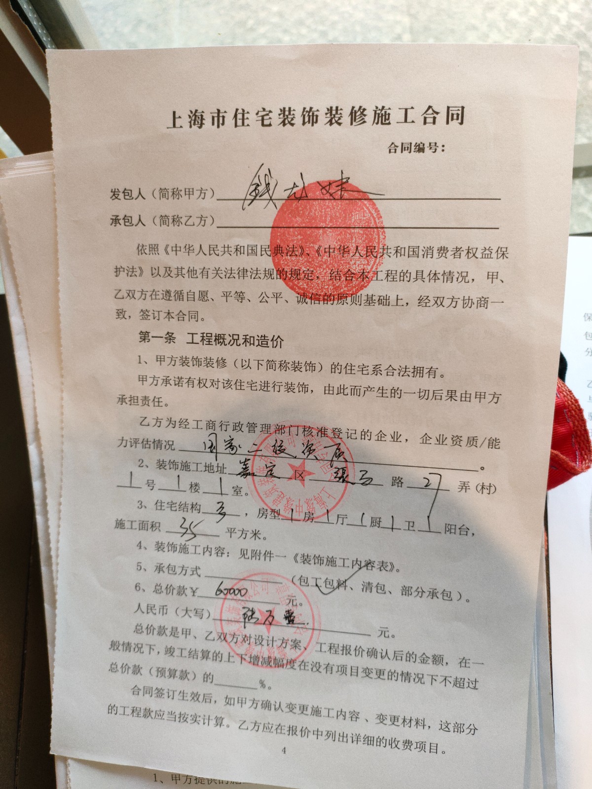 23年4月底,經(jīng)齊家網(wǎng)與被投訴人達成裝修意向,27號,其持早就擬定的合同文本來我家簽合同,我表示:須留下文本仔細看過,遭拒!并告知:未簽之前文本不可以交出的,這是行規(guī),你現(xiàn)在就看!專業(yè)內(nèi)容,外行一下子能看出什么?于是,看了總價后,表示:這樣看,是看不懂的,那就在這個總價內(nèi),但住宅裝修基本該有的必須要有!質(zhì)量亦須有保證!對方同意后當即簽了合同!第二天,4月28號開工。