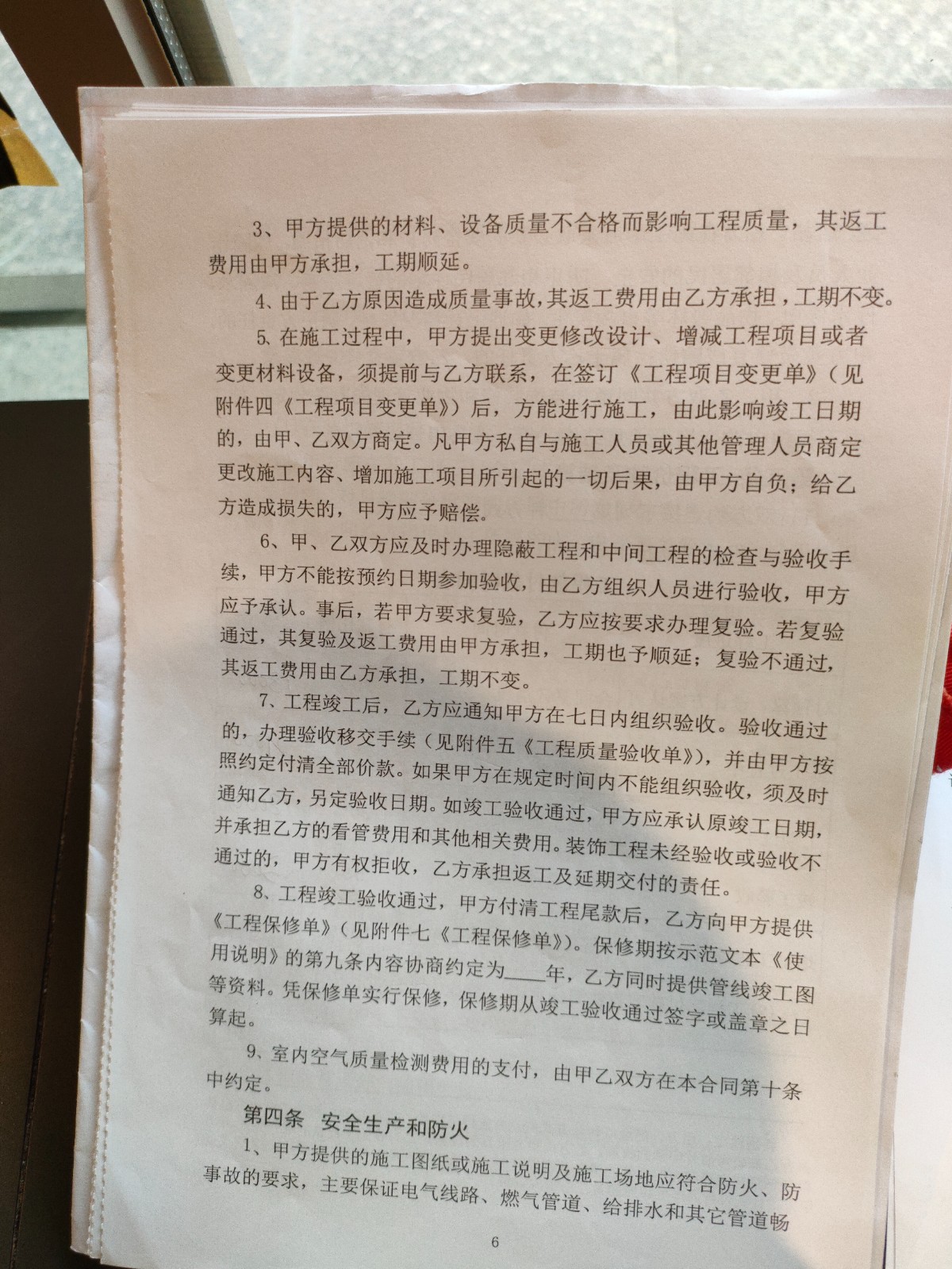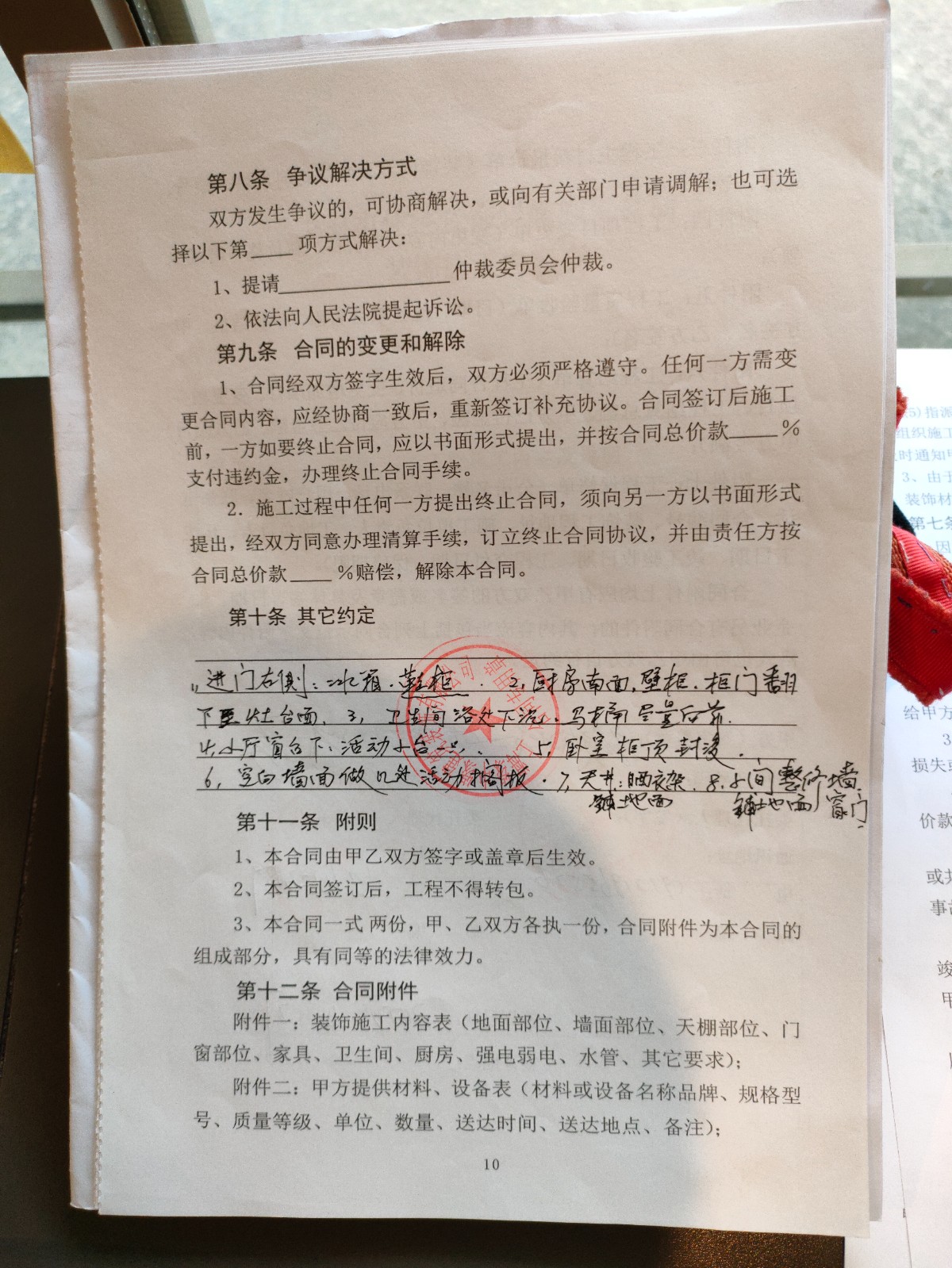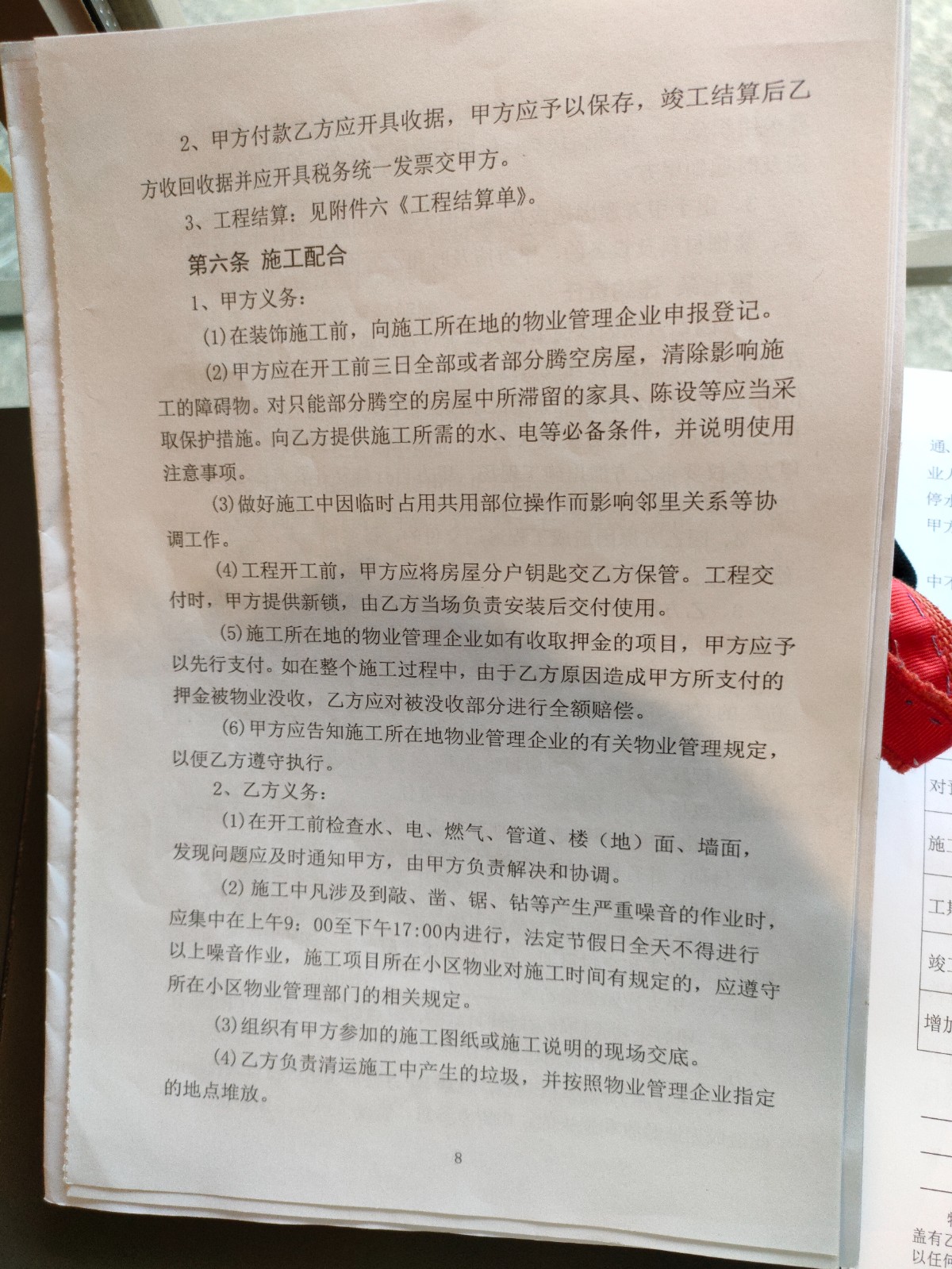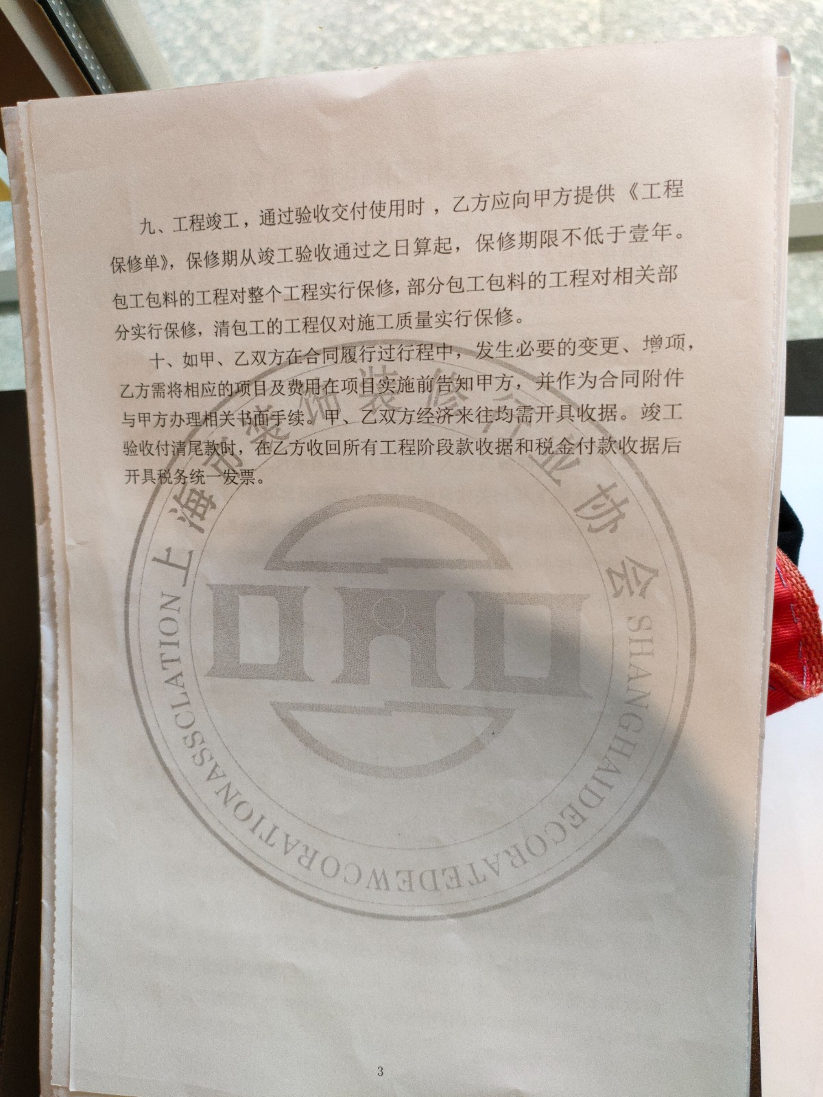 23年4月底,經(jīng)齊家網(wǎng)與被投訴人達成裝修意向,27號,其持早就擬定的合同文本來我家簽合同,我表示:須留下文本仔細看過,遭拒!并告知:未簽之前文本不可以交出的,這是行規(guī),你現(xiàn)在就看!專業(yè)內(nèi)容,外行一下子能看出什么?于是,看了總價后,表示:這樣看,是看不懂的,那就在這個總價內(nèi),但住宅裝修基本該有的必須要有!質(zhì)量亦須有保證!對方同意后當即簽了合同!第二天,4月28號開工。
