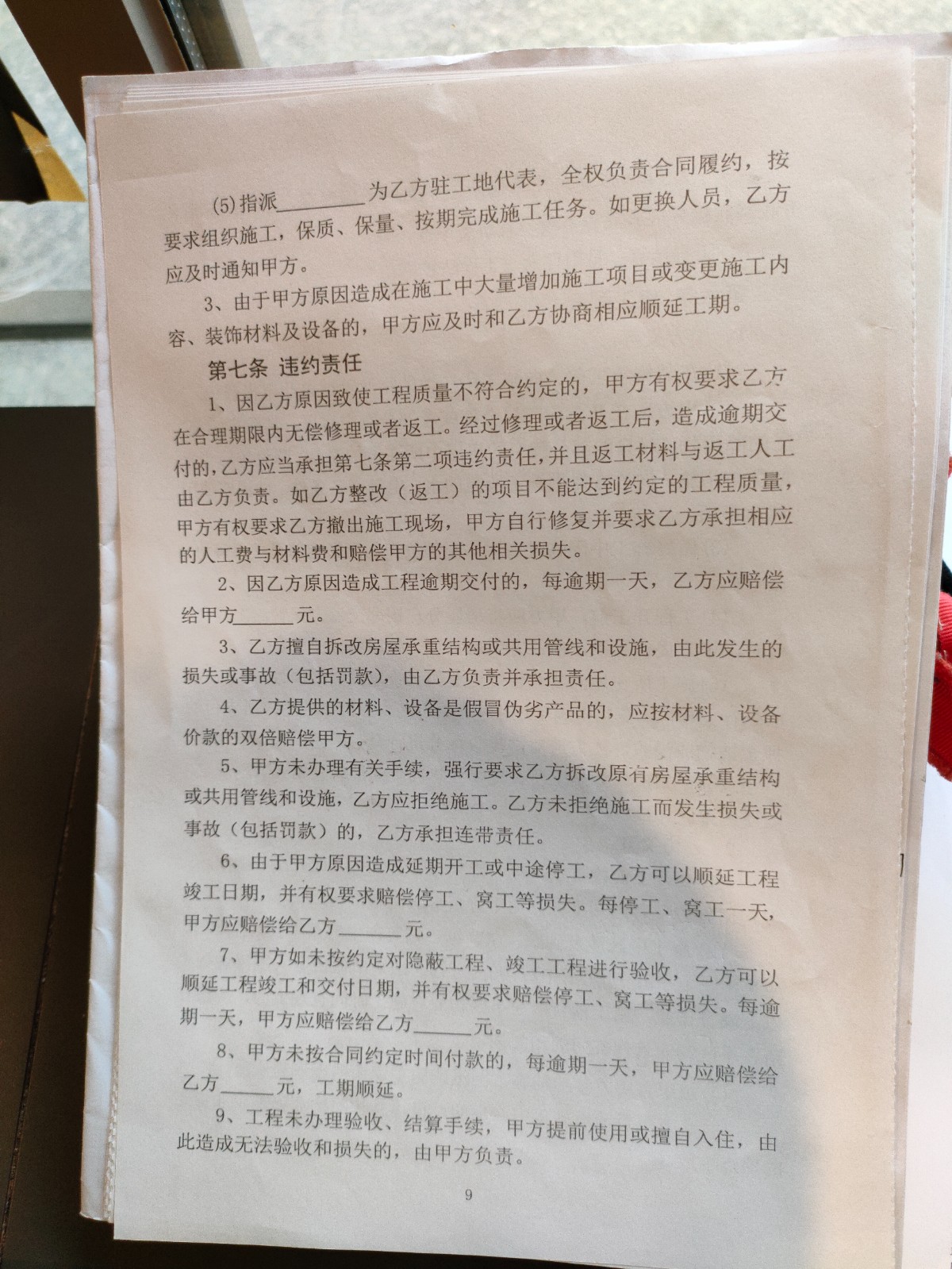 來了,看了,說了一大堆不知、不賺的話,而我只回答:這合同上連最基本該有的都沒有!而不該有的倒寫上了!這顯然的惡意,不然請審計!他卻邊說邊量那些未做項目的尺寸,最后不想再拖時間,就讓他再做下去!誰知做了二、三項后又不動了!至今也只是口頭上找著理由敷衍我!