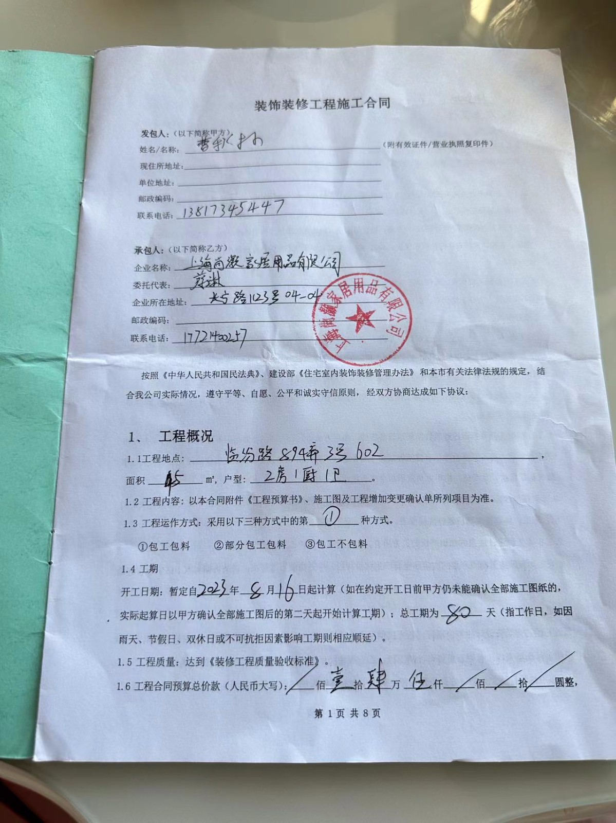 | 裝修面積 | 45m2 | 投訴人手機(jī) | 1800193**** | 被投訴人手機(jī) | 1772140**** |