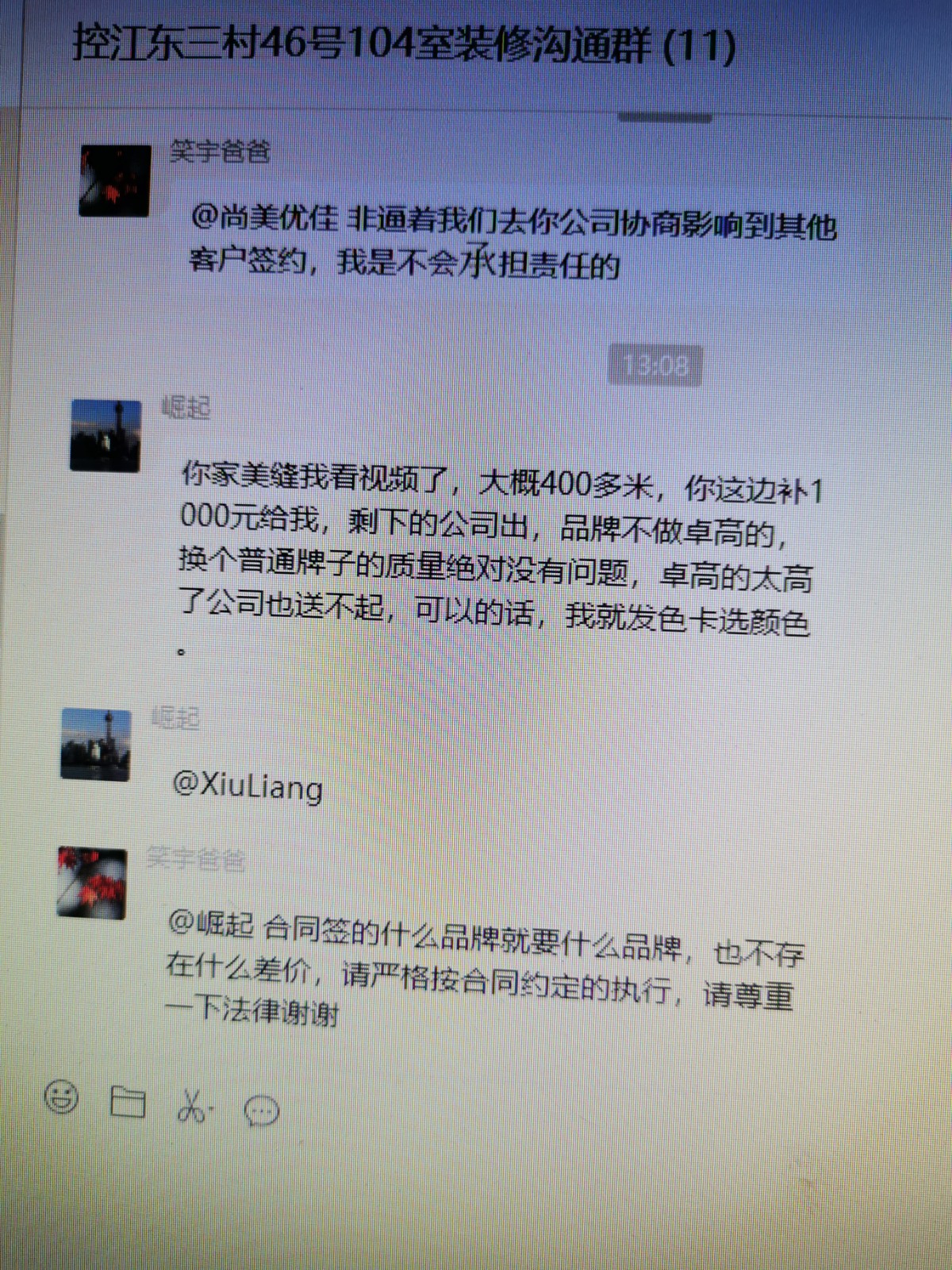 | 裝修面積 | 51m2 | 投訴人手機(jī) | 1356468**** | 被投訴人手機(jī) | 1316638**** |