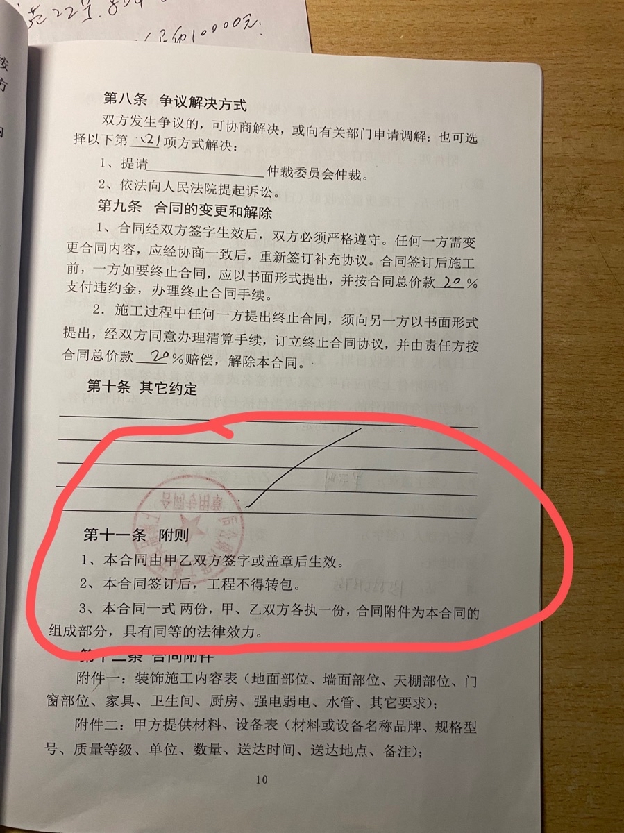 1.?合同附則寫了工程不得轉(zhuǎn)包,但實(shí)際上是外包給質(zhì)量不過關(guān)的裝修隊(duì)
