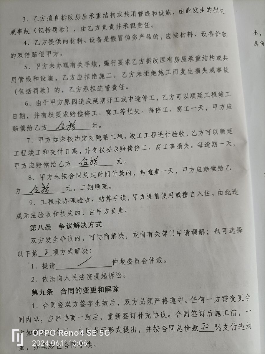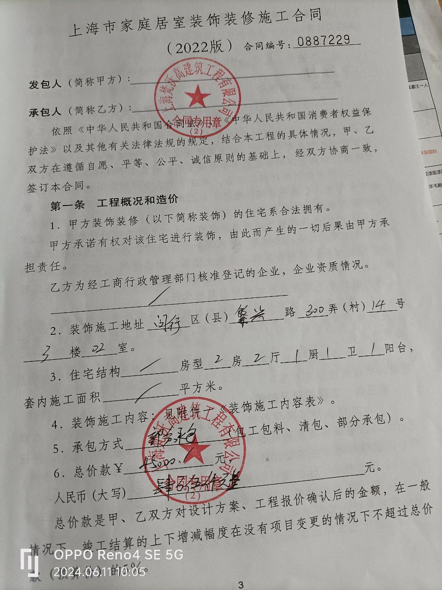 業(yè)主于2024年3月18日與梵沃高公司簽訂半包施工合同,約定20日開工至2個(gè)月工作日完工,現(xiàn)己違約到期,停工多日,梵沃高公司辦公地也不知道搬到哪里去。