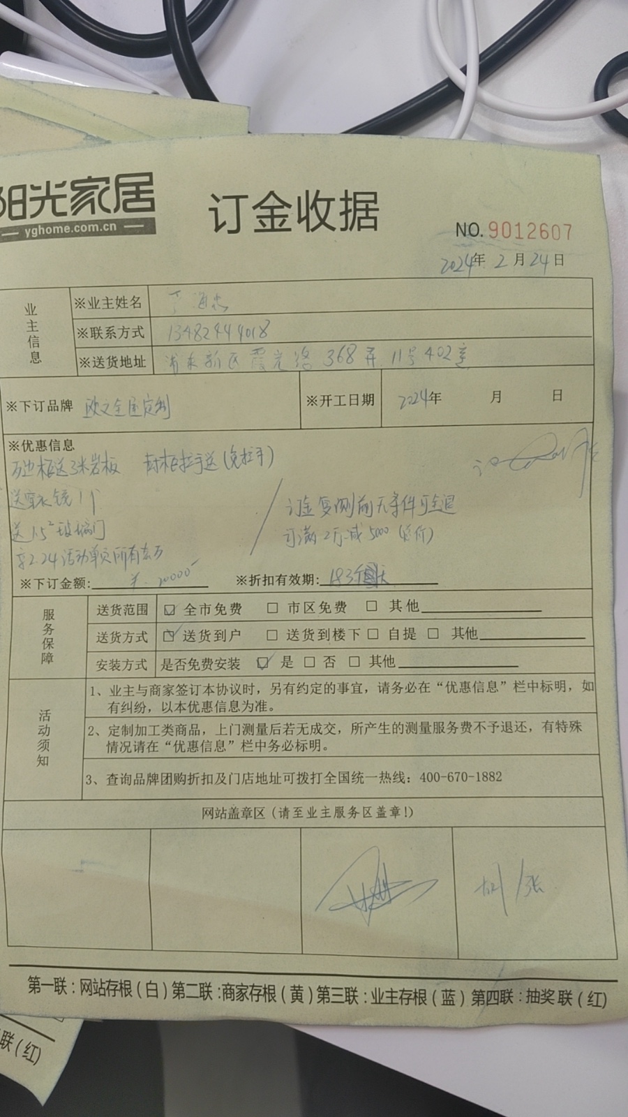 本人,于2024年2月24日在上海興義路99號世貿(mào)展館7樓,參加由陽光家居網(wǎng)(杭州圣贏信息科技有限公司)主辦的家裝博覽會。在展會現(xiàn)場下訂了一家平臺參展商歐文全屋定制的訂金(2萬元)。
