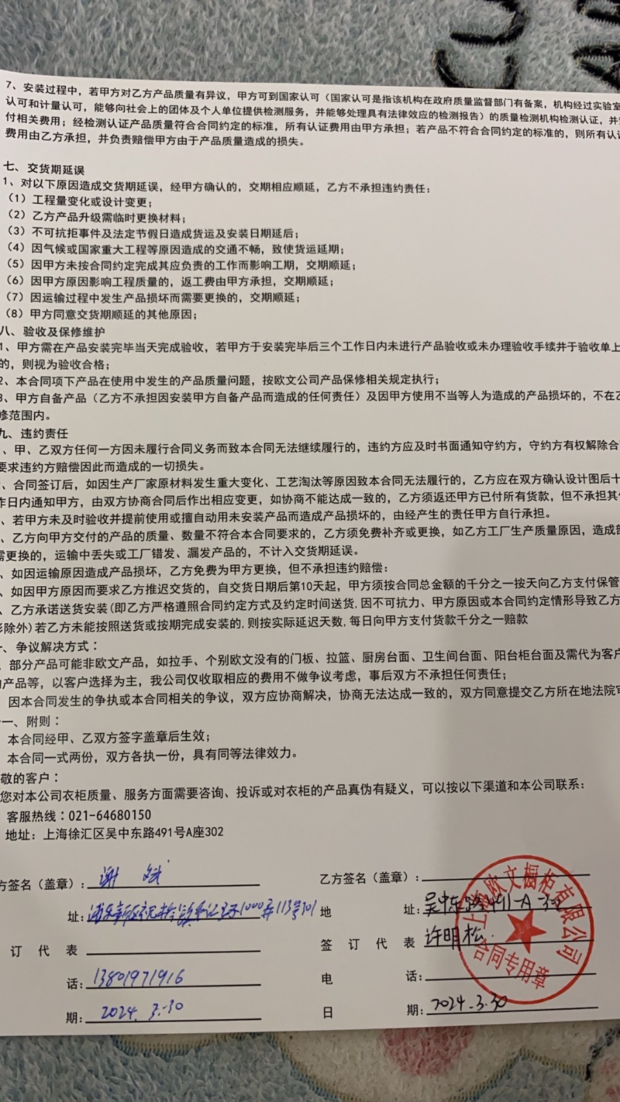 | 投訴類型 | 其它 | 投訴人 | 謝** | 被投訴單位 | 上海歐文櫥柜有限公司 |