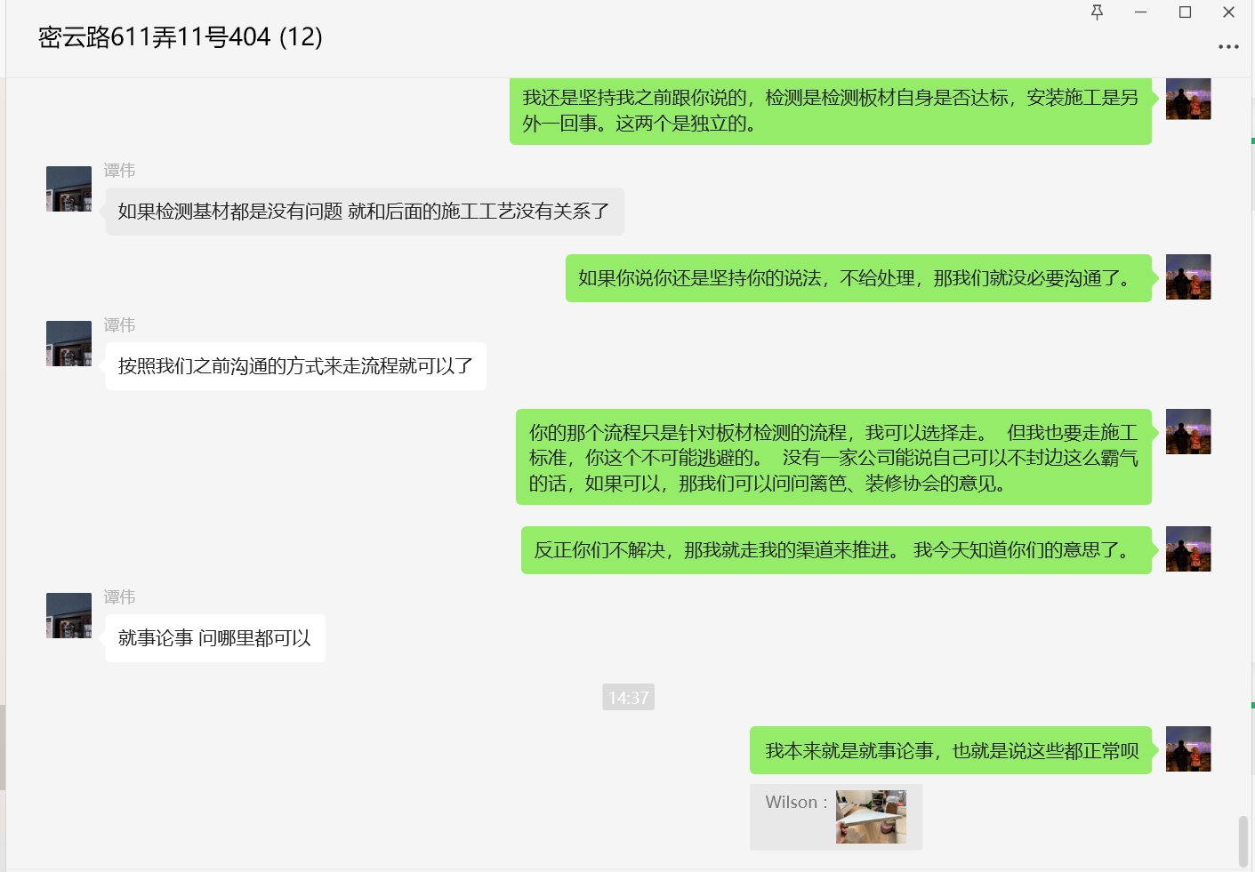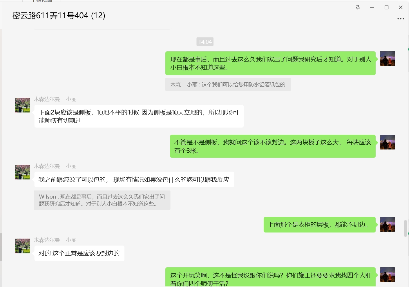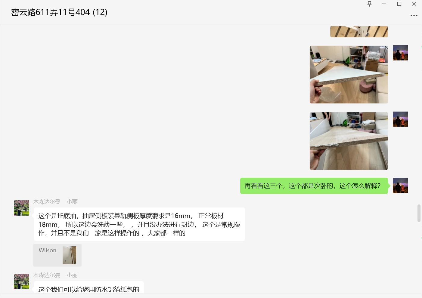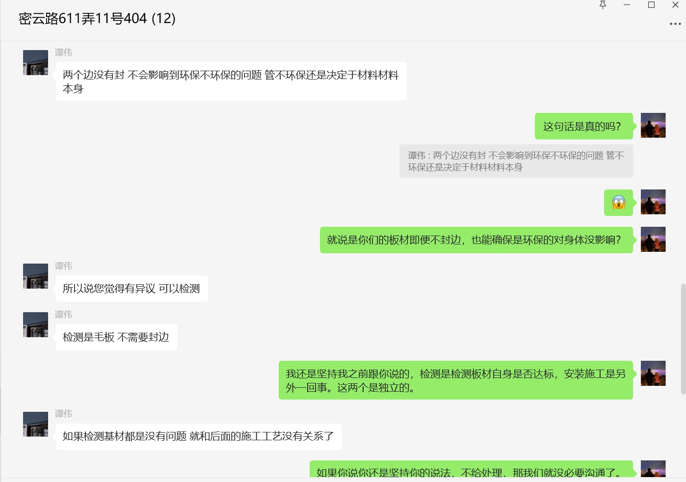 2)對于板材不封邊竟然能理直氣壯說沒有施工工藝問題進行解釋并道歉。
