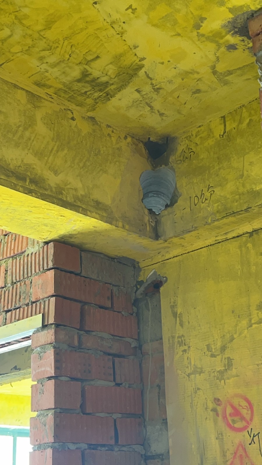2根主梁節(jié)點(diǎn)處打45度貫穿孔,上面1個(gè)6cm,中間一個(gè)10cm。箍筋和底筋全斷,使整棟樓處于危房,缺少抗震能力。