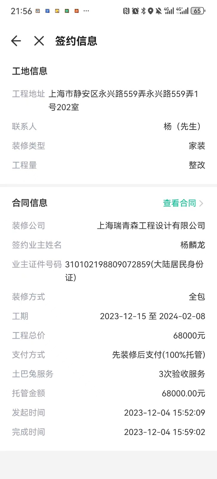 | 投訴類型 | 施工拖延 | 投訴人 | 楊** | 被投訴單位 | 土巴兔及 瑞青森工程設(shè)計(jì)有限公司 |