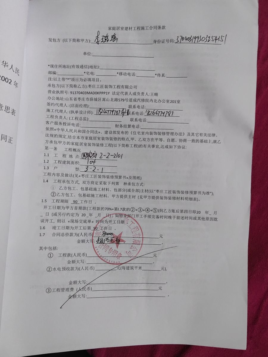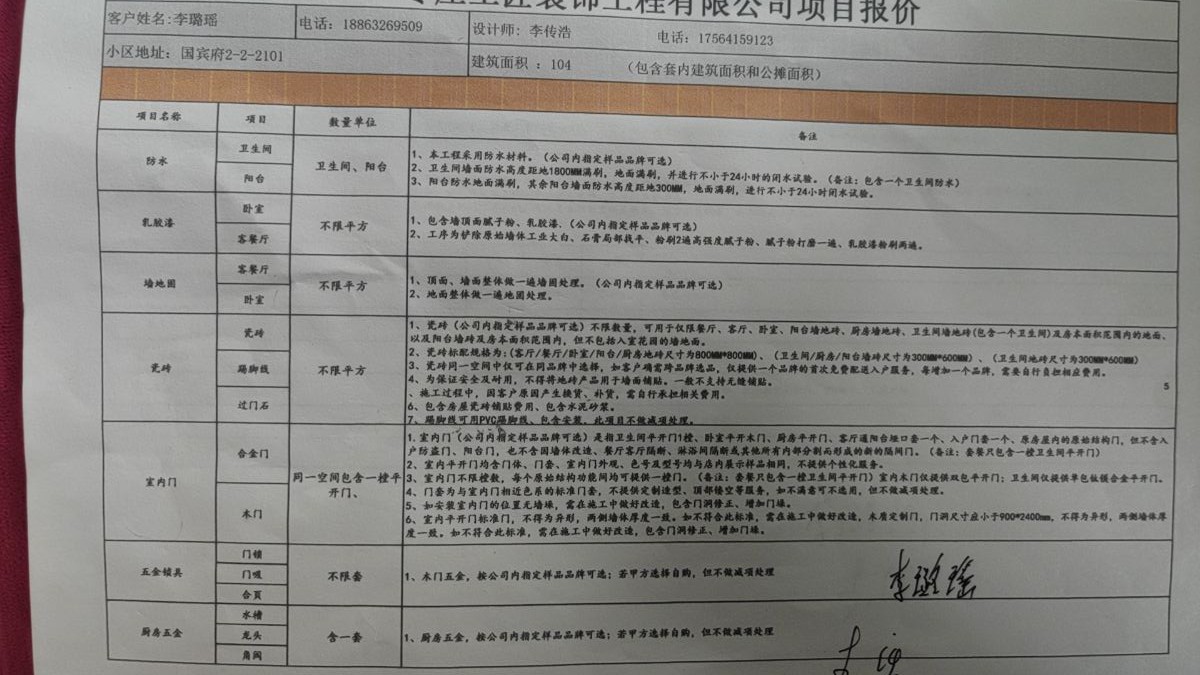| 裝修面積 | 104m2 | 投訴人手機(jī) | 1886326**** | 被投訴人手機(jī) | 1826677**** |