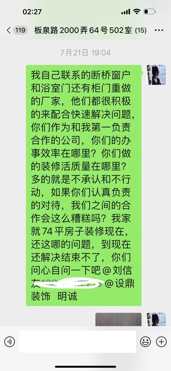 | 投訴類型 | 施工質(zhì)量 | 投訴人 | 崔** | 被投訴單位 | 上海設(shè)鼎裝飾裝潢工程有限公司 |