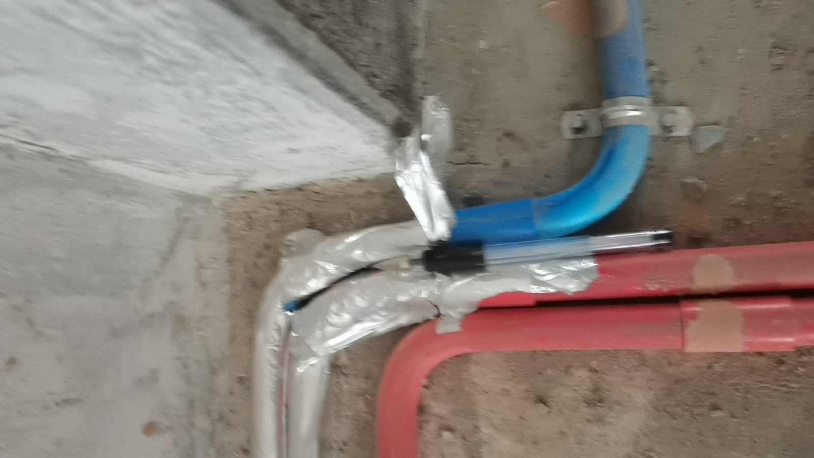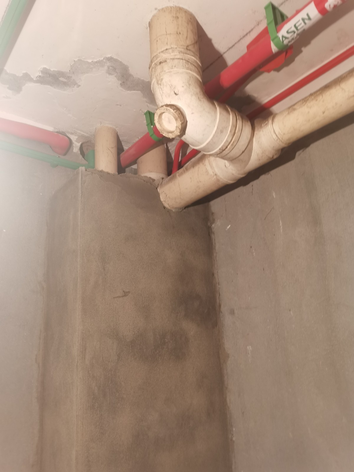 下水管隔音棉不包,已用磚砌起來了。