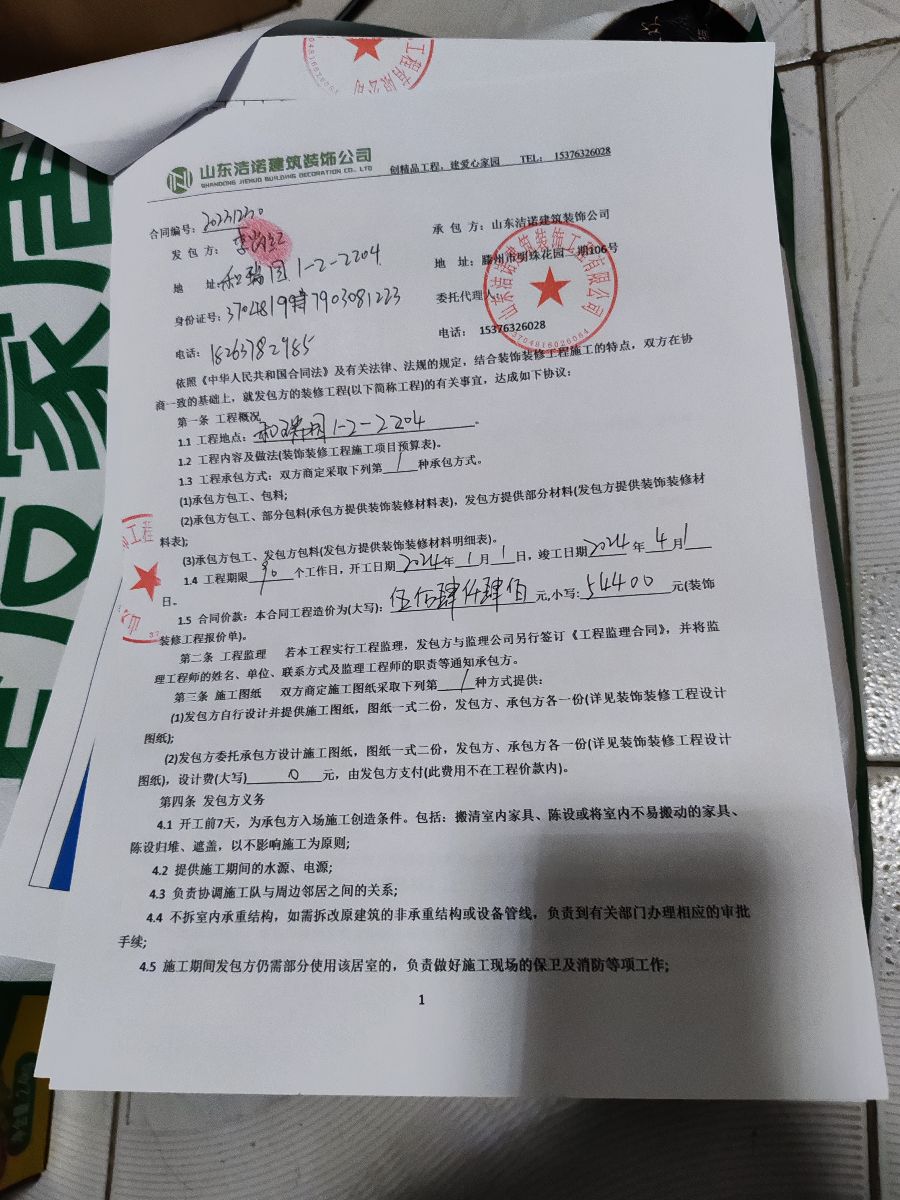 | 裝修面積 | 143m2 | 投訴人手機(jī) | 1351637**** | 被投訴人手機(jī) | 1537632**** |