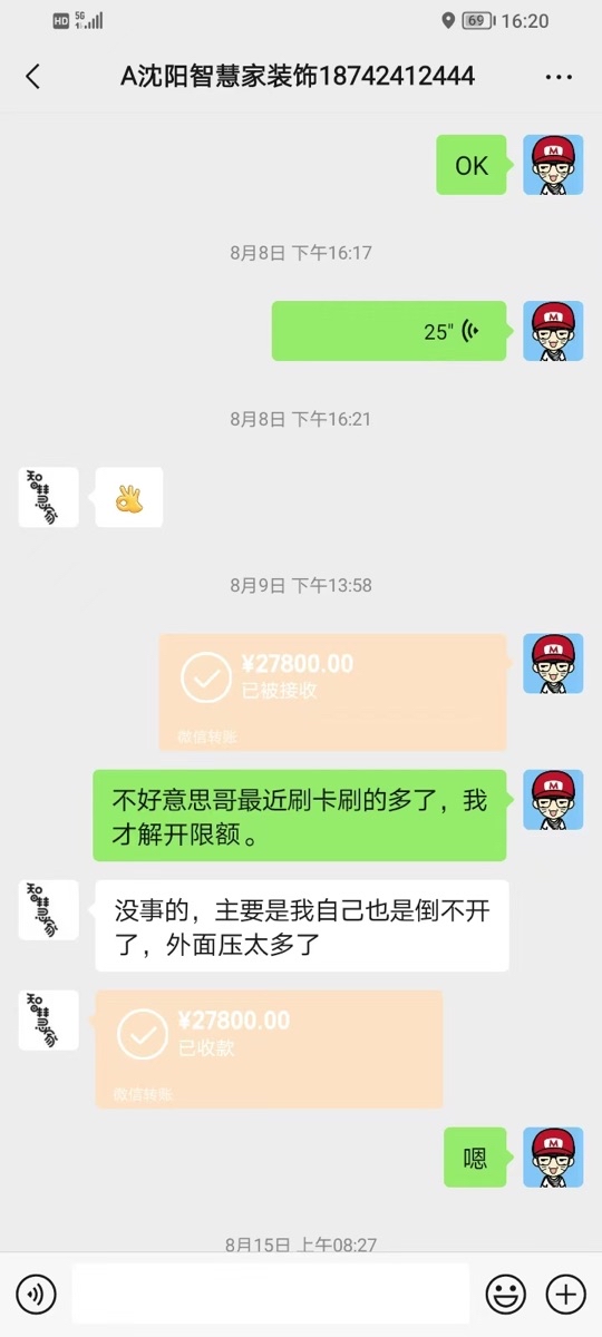 | 裝修面積 | 56m2 | 投訴人手機 | 1556606**** | 被投訴人手機 | 1874241**** |