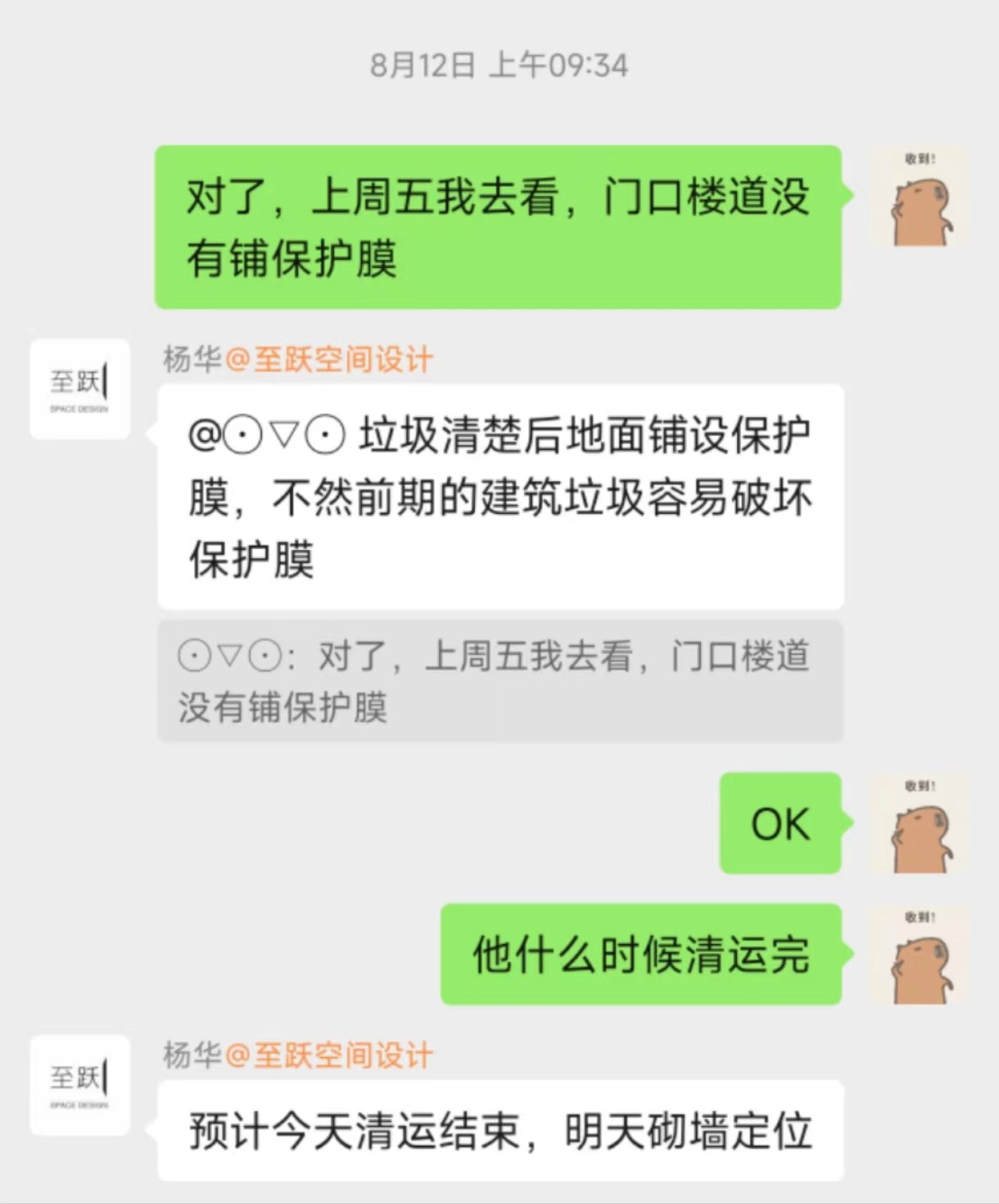 答應(yīng)我12號垃圾清除后門口會鋪保護(hù)膜,但是截止21號都還沒有鋪