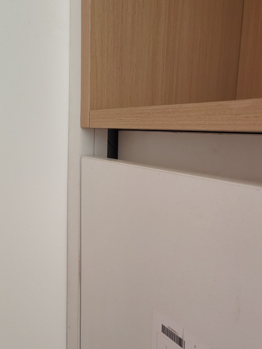 2.定制柜制作粗糙,包邊不知用何種原始工具操作,6月安裝至今僅過個2月,幾乎全部邊沿出現(xiàn)黑色線條。