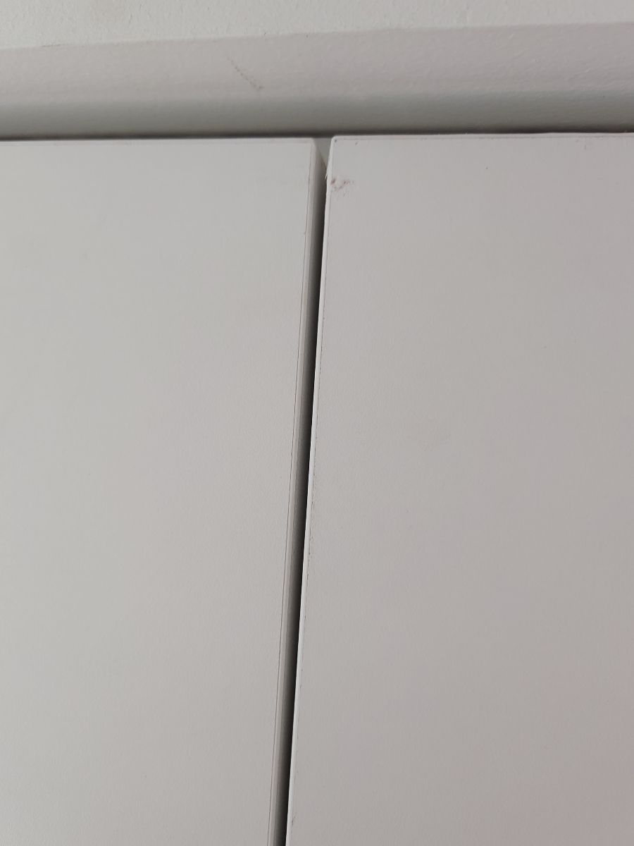 3.有一對柜門板,左右兩板高度差至少3毫米,非安裝原因,再次印證不知何種原始工具裁切板材。