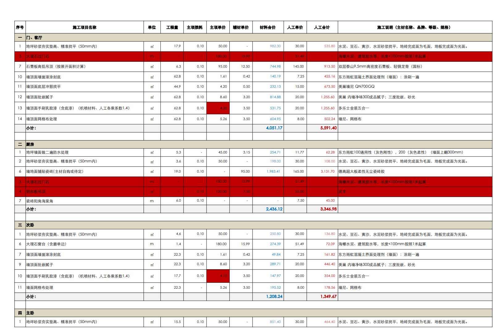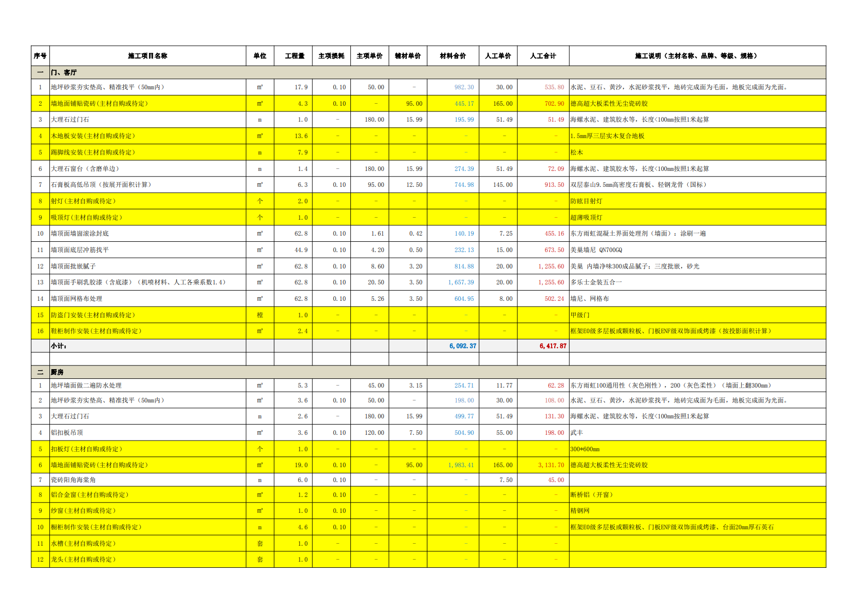 同公司、同裝修經(jīng)理、同設(shè)計(jì)師、同施工材料、相差4天開(kāi)工的另一處工地報(bào)價(jià)