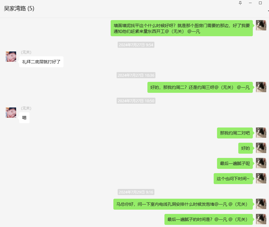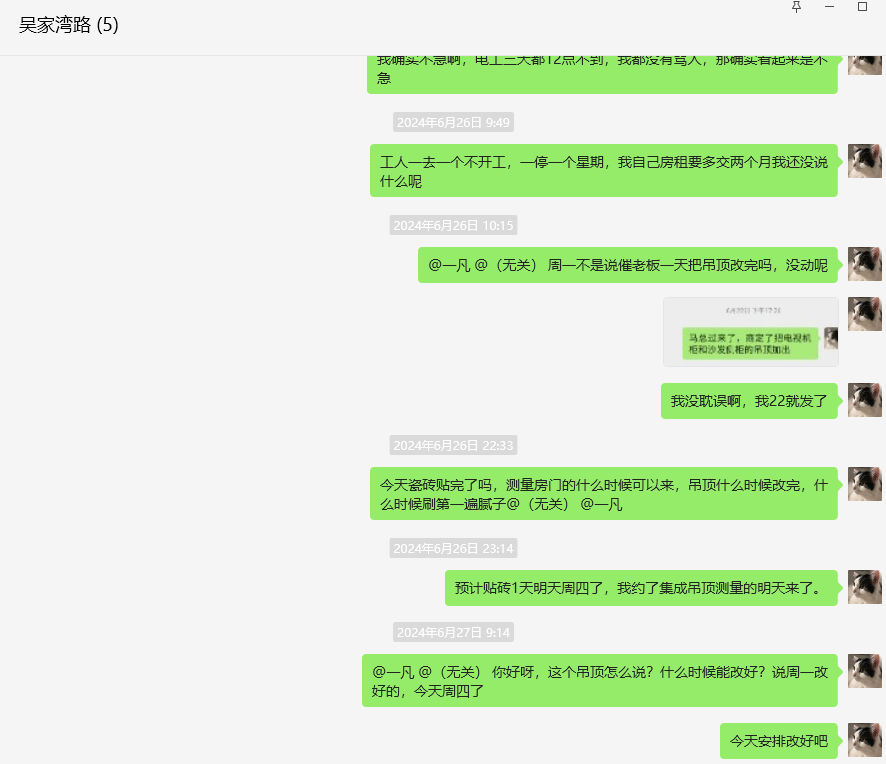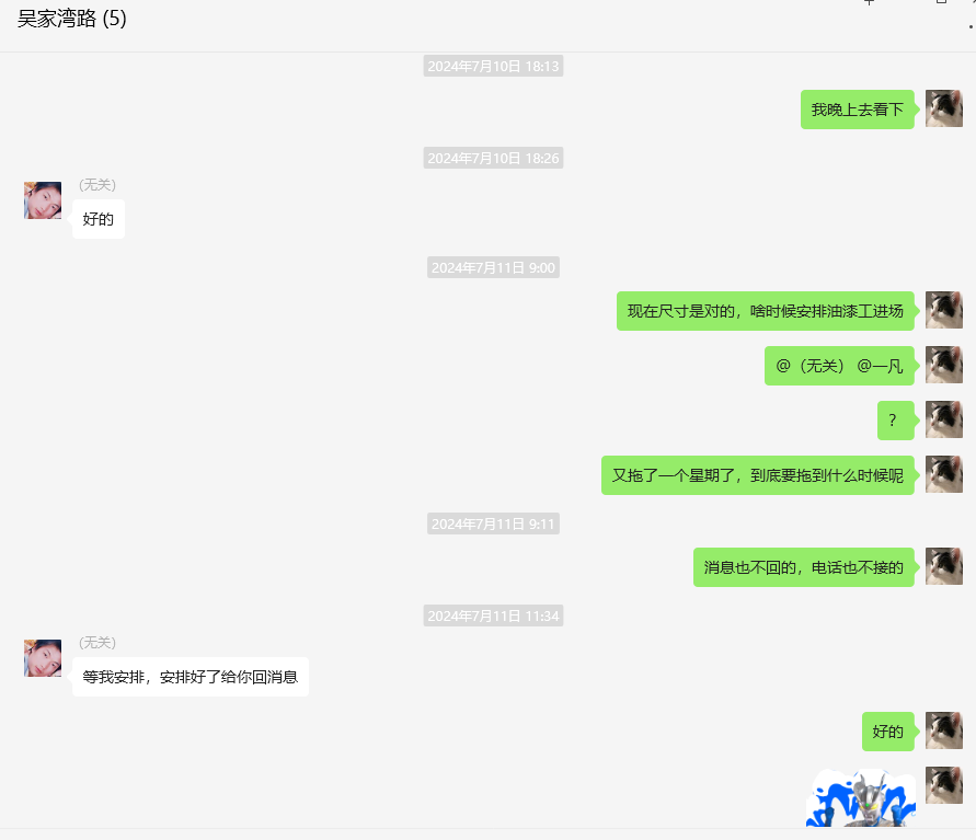 我反復(fù)催促,對(duì)方態(tài)度敷衍并拖延工期的聊天記錄