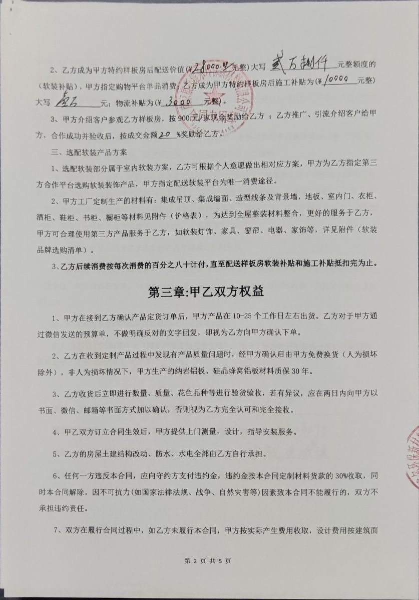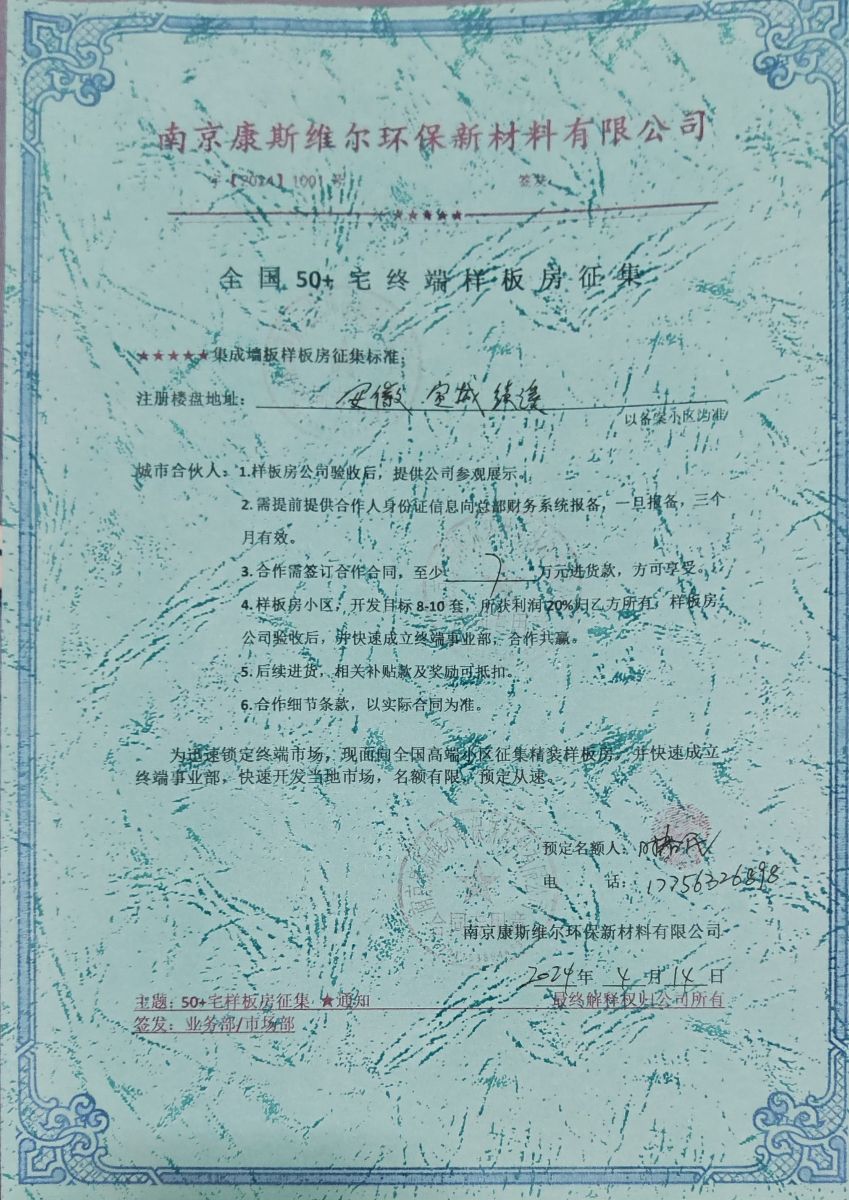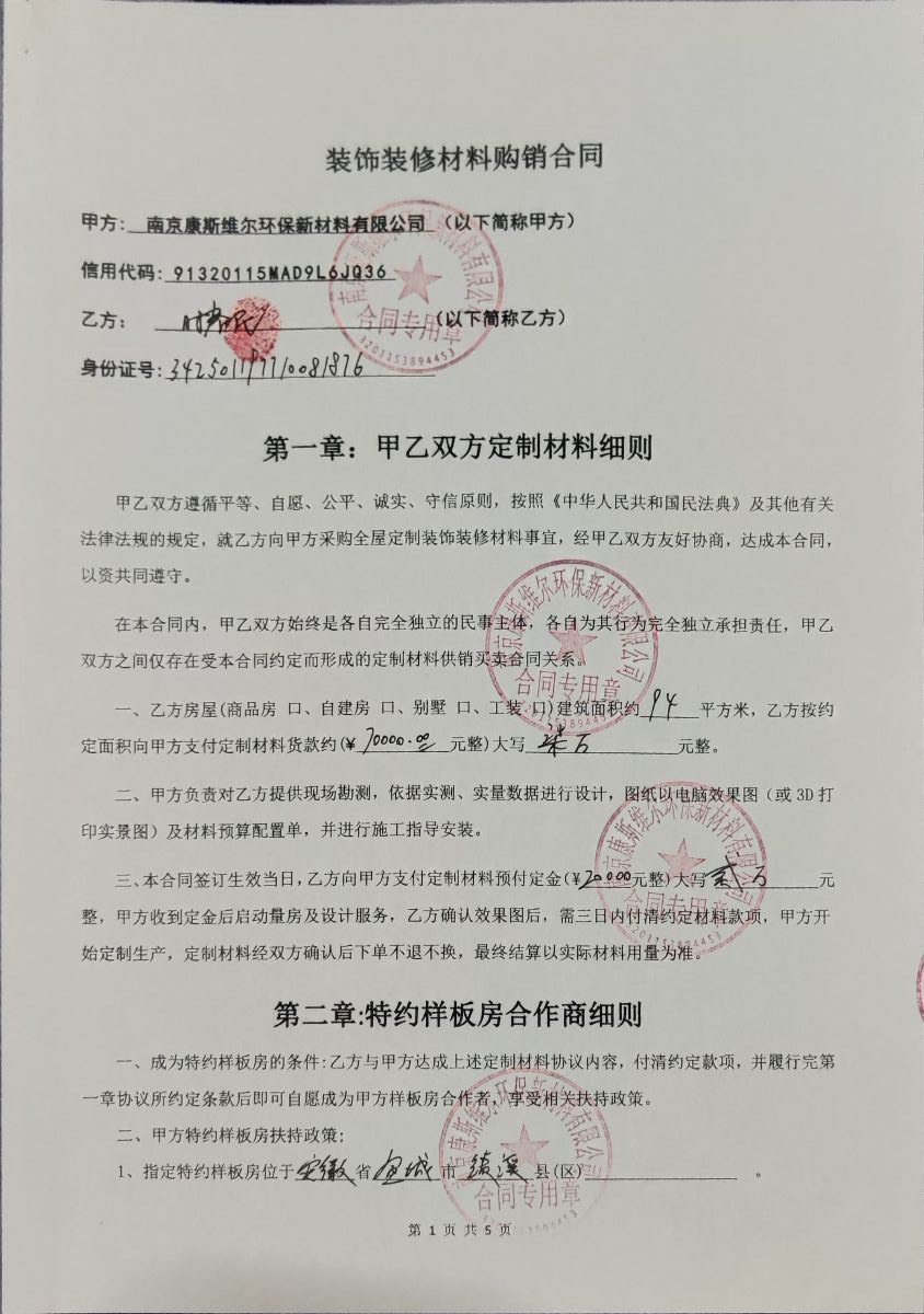 我叫時春民安徽宣城人2024年3月我在抖音平臺和微信視頻號看到整屋裝修一站式服務(wù)的一則虛假宣傳廣告,就在下面留下了電話號碼,不一會就有自稱客服的人給我打電話介紹源頭工廠裝修多么便宜,69900全國打造樣板房,從量房設(shè)計原材料輔材包工包料人工,家居家電都是送的,只要裝修好給他們廠家免費(fèi)開放一個月做樣板房宣傳就可以了!多么省心等等優(yōu)惠,然后邀請去他們廠家實(shí)地參觀,他加了我微信發(fā)了位置,等我到了位于江蘇省南京市江寧區(qū)祿口街道銅山迎駕路9號,南京康斯維有爾新型環(huán)保材料有限公司后,有一個姓趙的人接待了我,趙經(jīng)理開始介紹怎么裝修,說是樣板間很多優(yōu)惠,現(xiàn)在樣板房800元錢一個平方!我的房子實(shí)際面積90平方不到一點(diǎn),整屋裝修下來7萬塊錢,都包括墻板吊頂,各種瓷磚,柜子,門,廚衛(wèi).燈具,和家具床上用品!然后再送全屋家電等模式,(除了前期的水電和陽臺窗戶除外)
