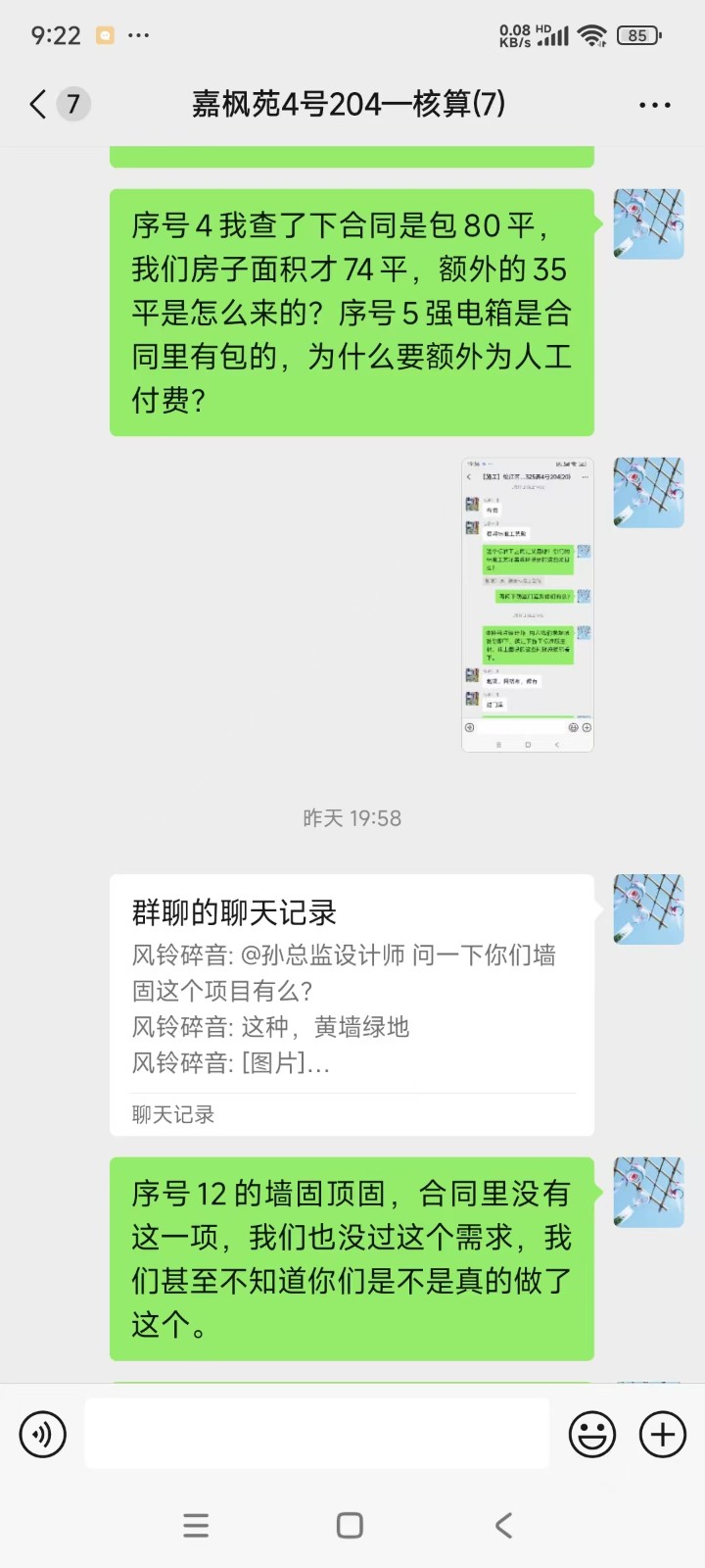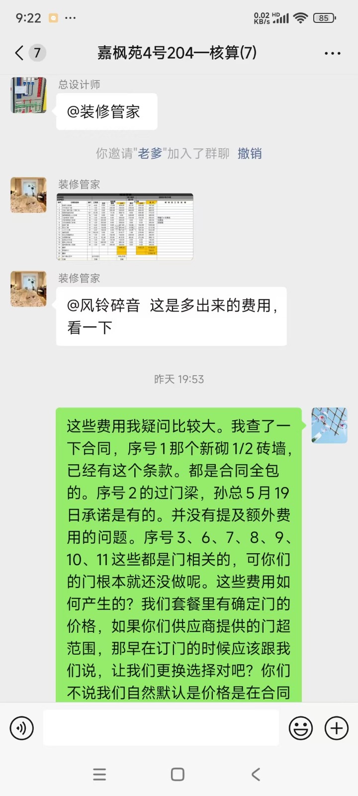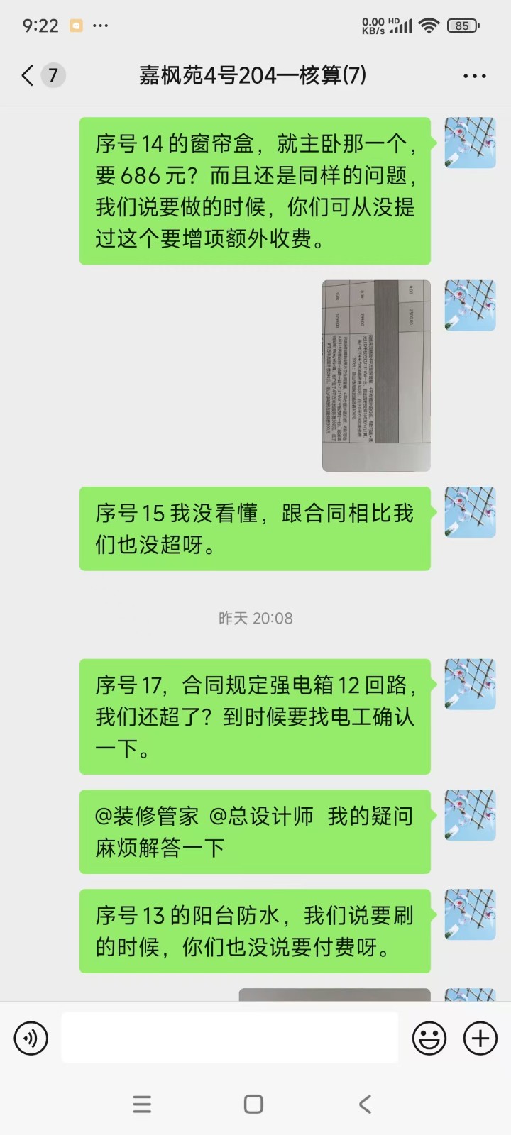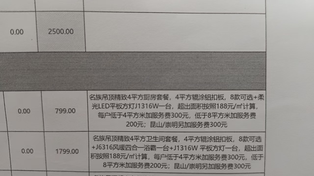 在鏟墻時(shí)碰到了第一次增項(xiàng),以停工為威脅額外收取了我們5300元的鏟墻費(fèi)用,我們咬咬牙也承擔(dān)了。當(dāng)時(shí)項(xiàng)目經(jīng)理也承諾之后再無增項(xiàng)費(fèi)用。
