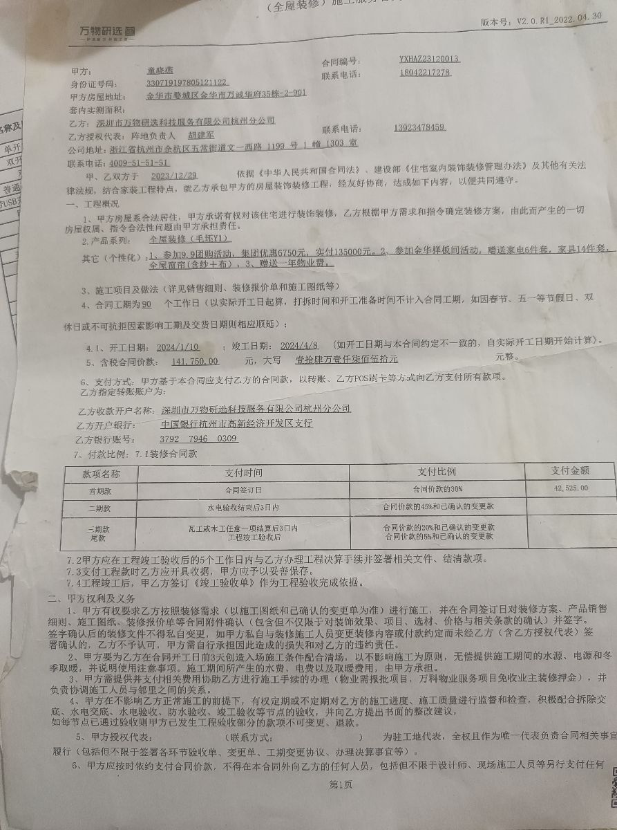 | 投訴類型 | 施工拖延 | 投訴人 | ′** | 被投訴單位 | 深圳市萬(wàn)物研選科技服務(wù)有限公司杭州分公司 |