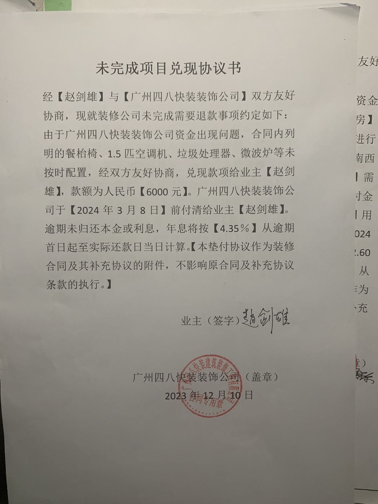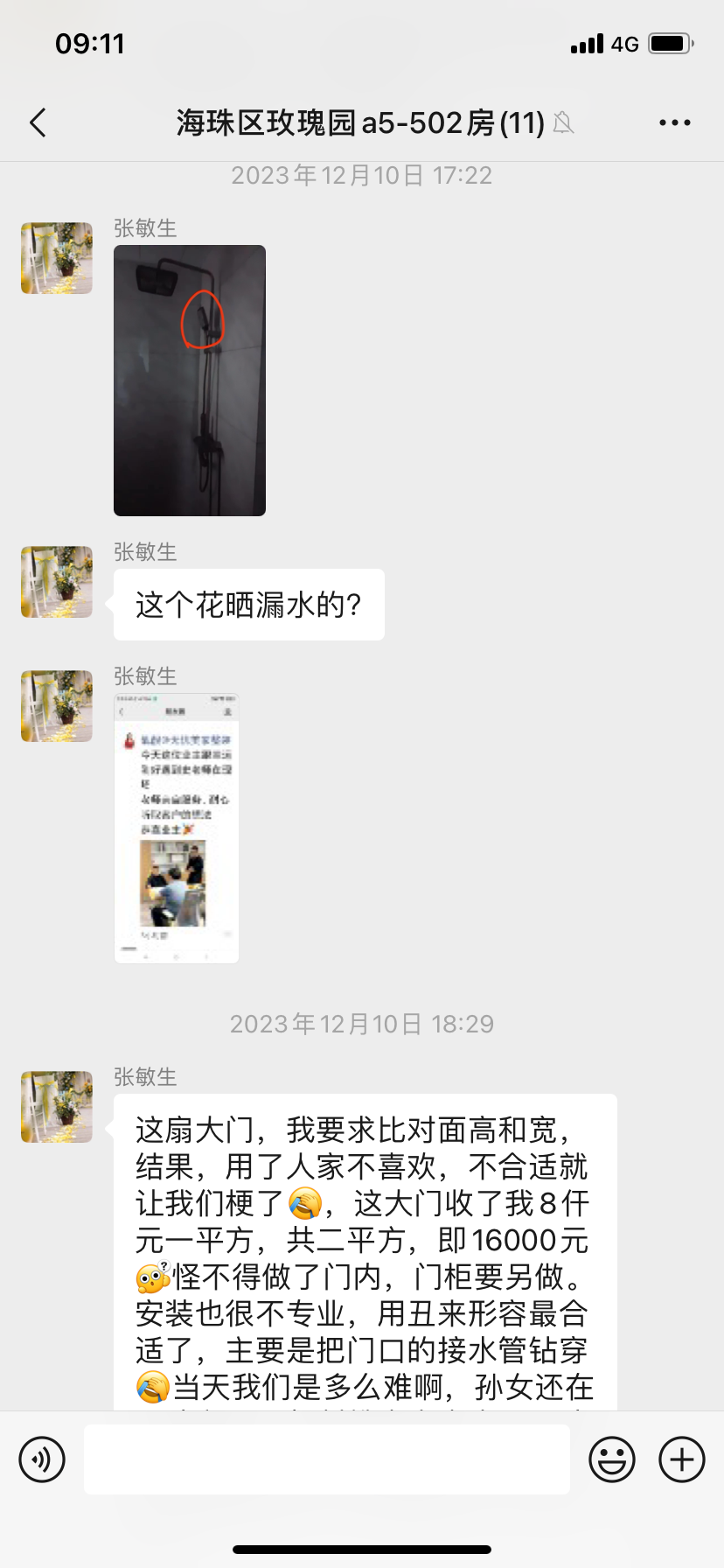 3. 服務態(tài)度惡劣。2023年9月至2024年10月,一年多的時間里我們向四八快裝追款,北京公司總經(jīng)理薄縣立,廣州公司原店長王禹哲、現(xiàn)店長羅君立、管家李志鋒等人,要么打太極、踢皮球、拖字訣,要么就干脆微信不回、電話不接、不響應老客戶合法權(quán)益和訴求!