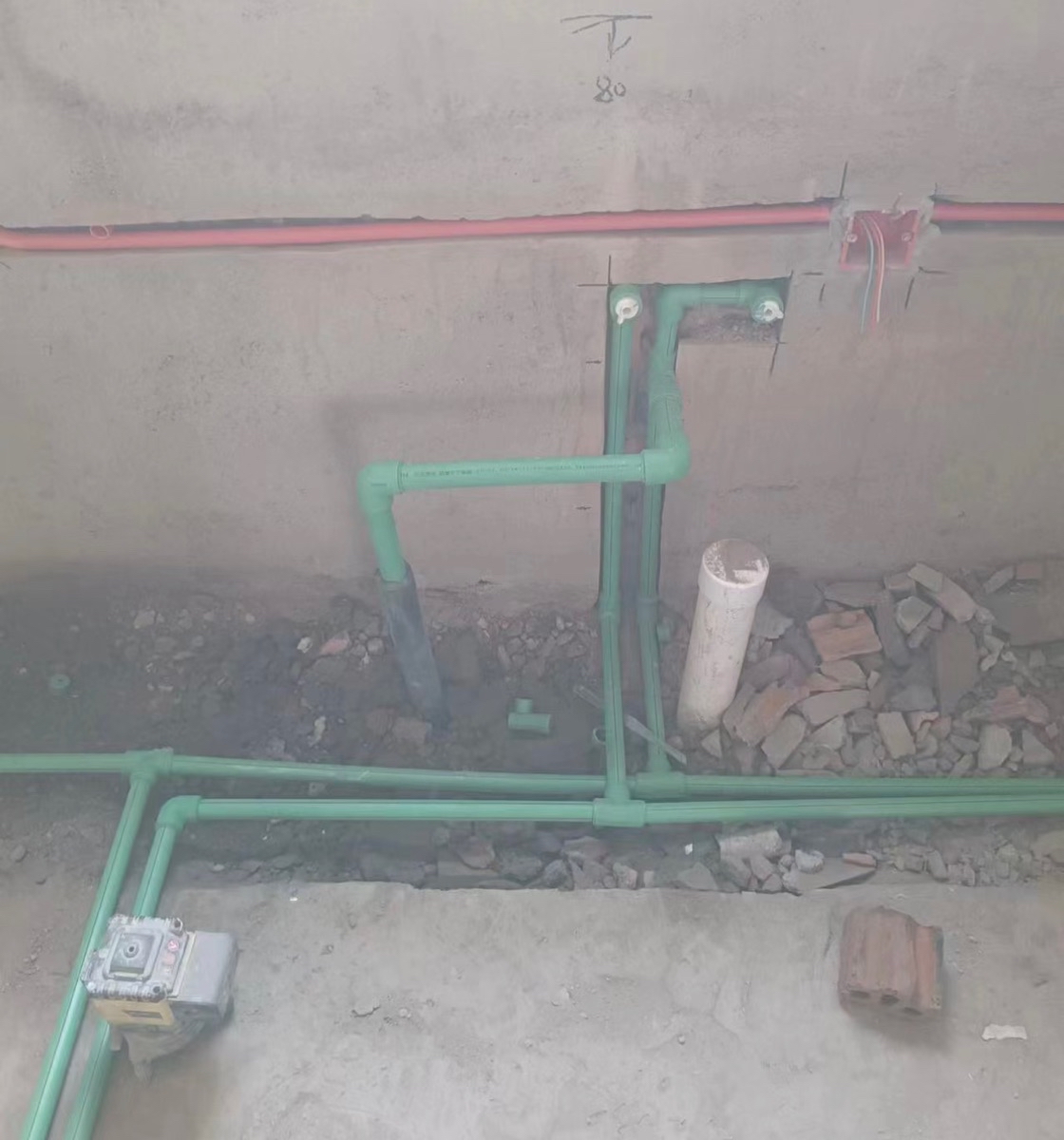 公司能騙則騙 水電期間 多次告知點位數(shù)量及水管數(shù)量以合同約定來做 水電驗收 因為我們是自建房 外面并沒有通水通電 朱某 拍胸脯說 他干的活肯定沒有問題后又被哄騙簽了水電工程驗收 隨即他催促我們交第二筆款項 我們按約定時間去交款后 告知公司劉中 泥工必須安排專業(yè)工人來施工 因為與朱某交流下來 他又要私自干泥工階段的工作 但是在此期間他一直駐扎在我們房內(nèi)不干他水電收尾的活 (封槽 固定地面線管 電線銅絲外露 電線沒有黃蠟管 廁所電線沒有黑色線圈管(有可能專業(yè)術(shù)語描述))反而在給涂防水 效果簡直無語