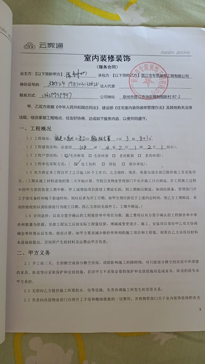 | 裝修面積 | 107m2 | 投訴人手機(jī) | 1362599**** | 被投訴人手機(jī) | 1815096**** |
