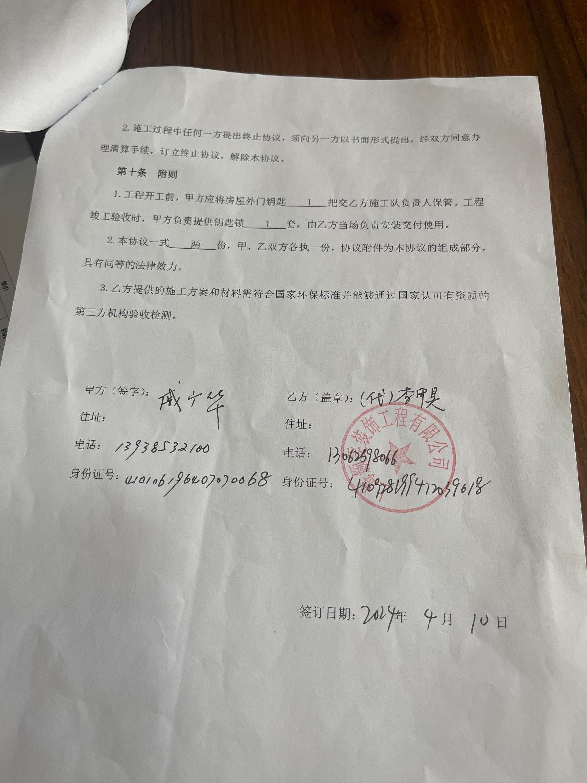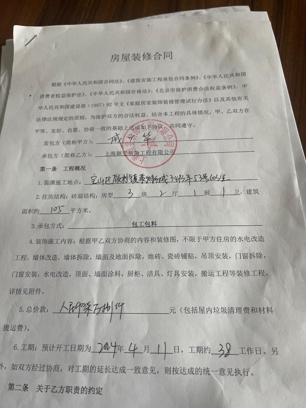 今天3月找自如裝修準(zhǔn)備將105平的舊房進(jìn)行翻新用于出租,后考慮出租不適宜就改為自住,自如就給介紹了說是給自如干工程的上海顥雯裝飾工程有限公司,于是在今年4月10號(hào)簽定房屋裝修合同,開工日期4月11日,工期為38個(gè)工作日,6月6日到期;于10月6號(hào)完工。