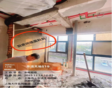 墻皮不需要鏟除的被鏟除【陽(yáng)臺(tái)西南角北立面墻(冰箱位南側(cè)墻)】,做隔墻前未恢復(fù)原樣,需扣款。