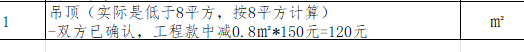 吊頂(實(shí)際是低于8平方,按8平方計(jì)算) -雙方已確認(rèn),工程款中扣款。