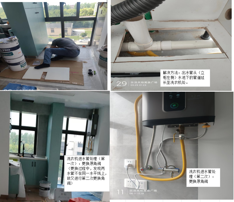 洗衣機(jī)進(jìn)出水管鋪設(shè)不到位,施工方又不處理,后由甲方人員施工解決,需扣款。