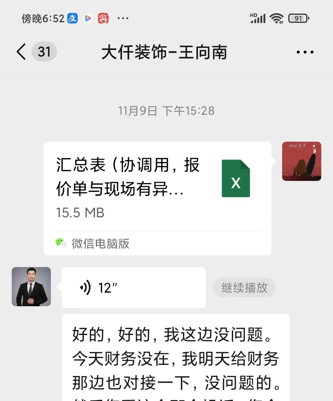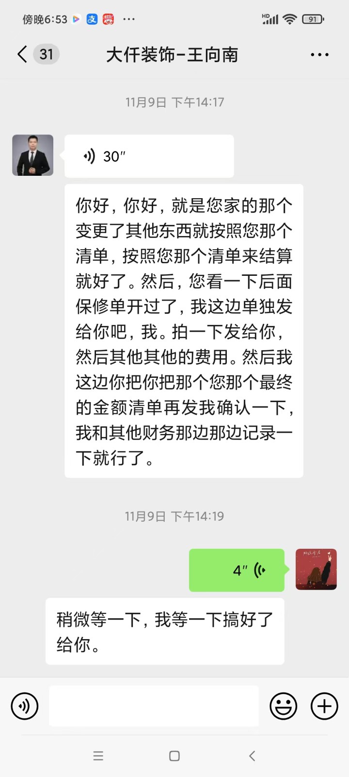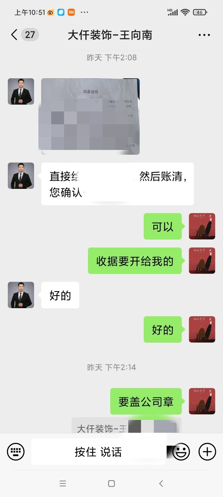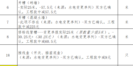 新砌墻體粉墻:?jiǎn)蚊娣鬯?,?yīng)該減去另外一面的面積,需扣款。 雙方已確認(rèn)。