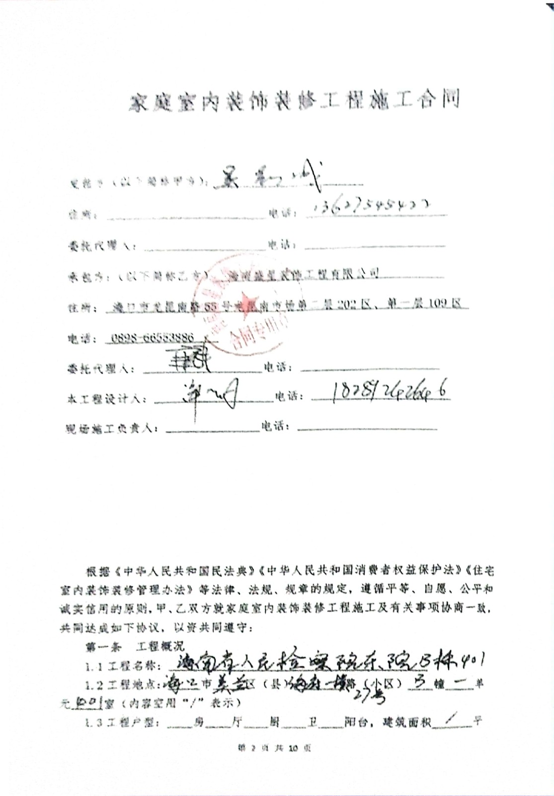 3、按盛星裝飾工程有限公司代表譚文滔在洽談時(shí)承諾,在合同約定期內(nèi)完成該工程,并做到拎包入住。