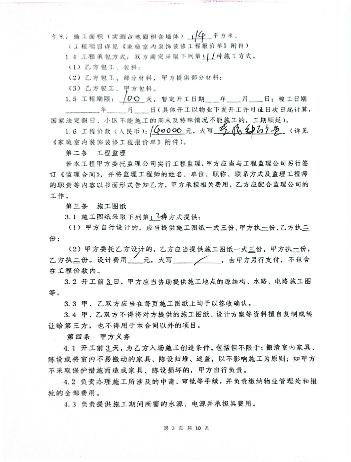 1、合同涉及重疊收費(fèi)。本人于2024年7月12日和盛星裝飾工程有限公司簽訂全包裝修合同,金額為14萬(wàn)元,該公司現(xiàn)場(chǎng)測(cè)量員實(shí)測(cè)房子面積114平方米,按99800元套餐全包裝修包含80平方米,超出部分按每平方798元/平方米進(jìn)行計(jì)算,超出的34平方面積包括衛(wèi)生間面積,但衛(wèi)生間又單獨(dú)收費(fèi)9880元。