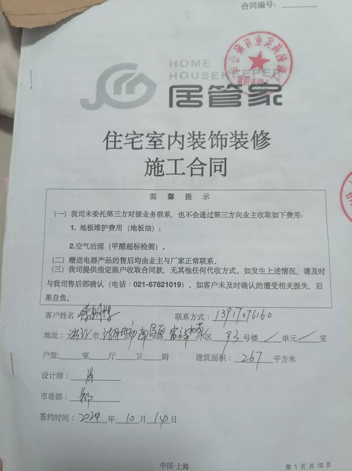 | 裝修面積 | 208.9m2 | 投訴人手機 | 1366199**** | 被投訴人手機 | 1580037**** |