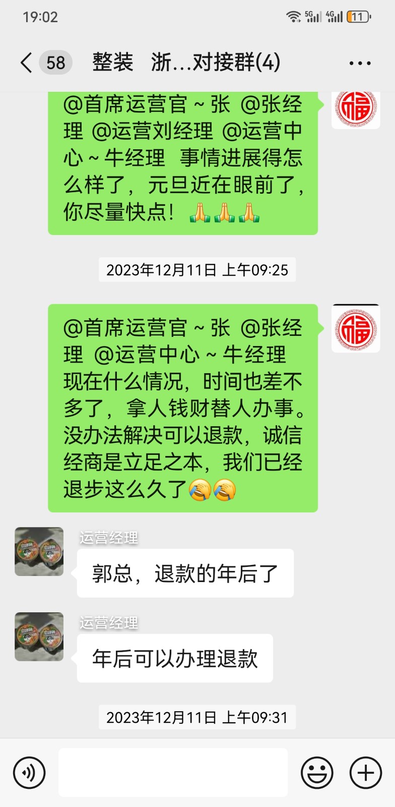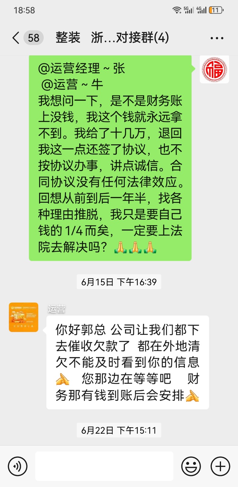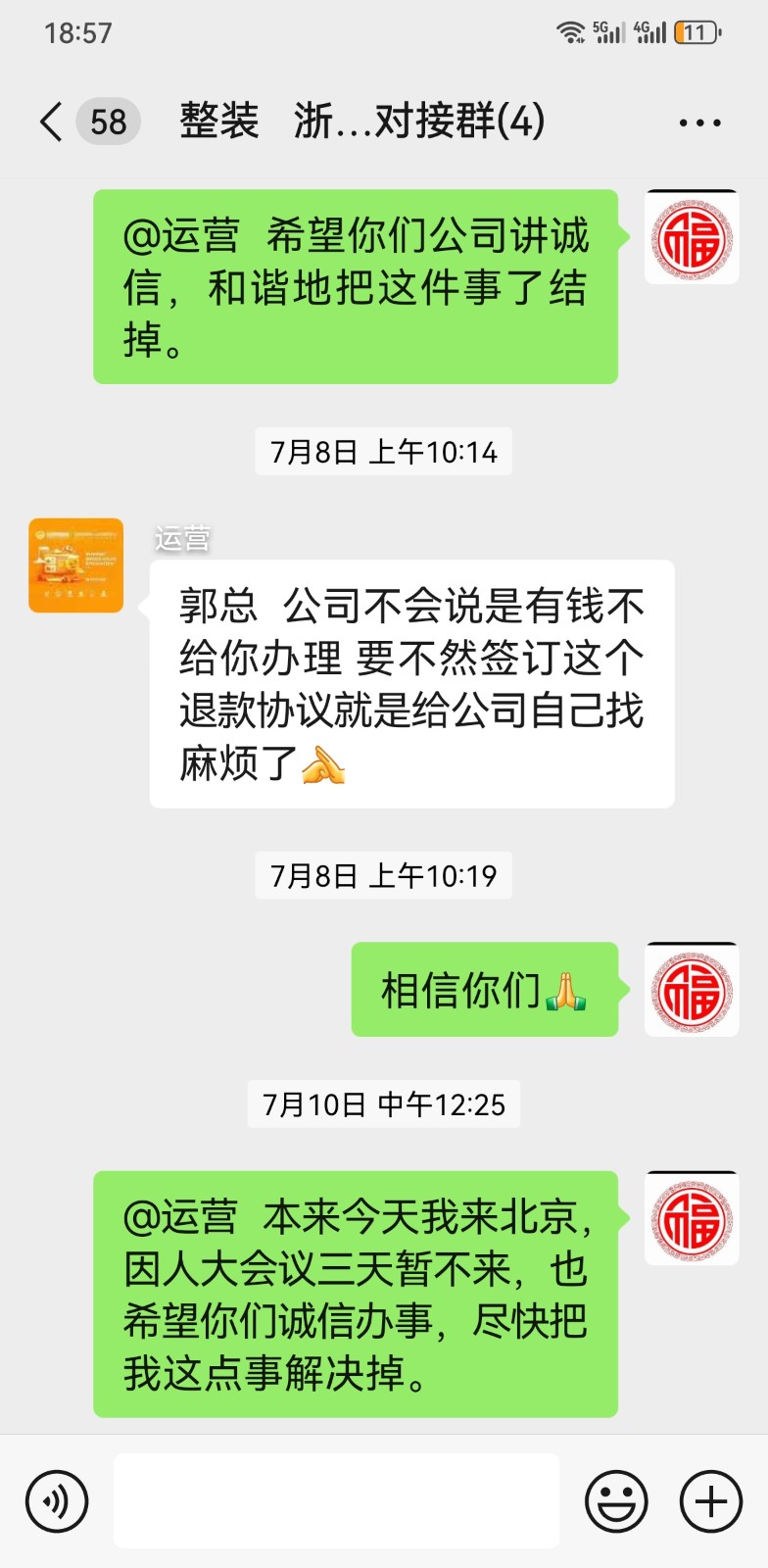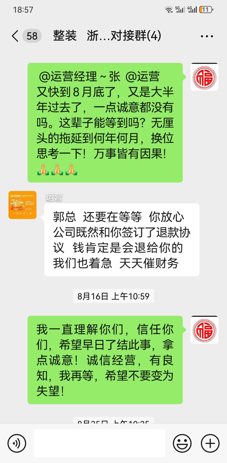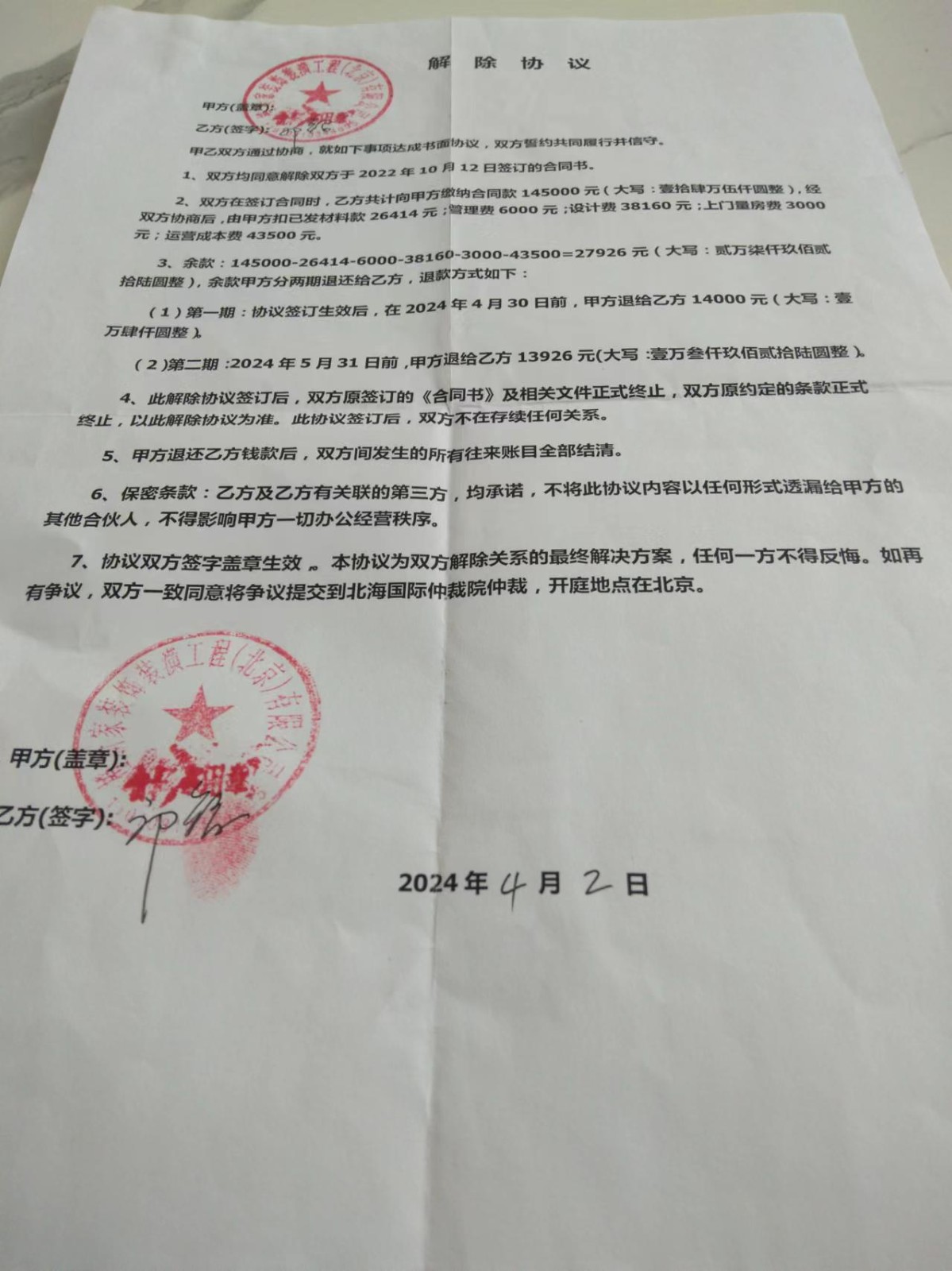 后來和大廳銷售唐經理開始談裝修的事兒,它說全屋整裝,正好它們全部承包,拎包入住,當時我裝修房子大約二十萬左右、它答應我一個一百四十平方的二層樓、和一個七十多平方的地下室當做它們的樣板間全部免費給裝上、(包括床、沙發(fā),貴子,辦公桌椅、和會議桌椅還有電器等)施工隊也是北京的,所有費用不用我管.我交的145000元都是裝修全款,所有的貨都比我個人進貨便宜很多,所有運費全有公司承擔,我的往僅路費和當時還抽獎抽了500元,說不返現(xiàn)金都給貨 ,當時還說送一個電視也給我郵回來,到家等了幾個多月,抽的電視也不見蹤影。過了幾天他們建了一個裝修對接群。三個多月就發(fā)來了點瓷磚、運費也是我自己付的,他們說到后期運費都給材料,看進貨單上的價格得貴三分之一,瓷磚到了我問要施工了你們?yōu)樯恫粊砣?,說太忙,讓我找人干活,它們給施工補助,沒辦法我就找人干了,六個多月去了,只有一個一百多平方的瓷磚發(fā)過來就完事兒了,后續(xù)什么都沒有了,一共加一起按他們的價格還不到三萬,其余的東西一直推,今天說明天發(fā)貨,明天還是這么說,