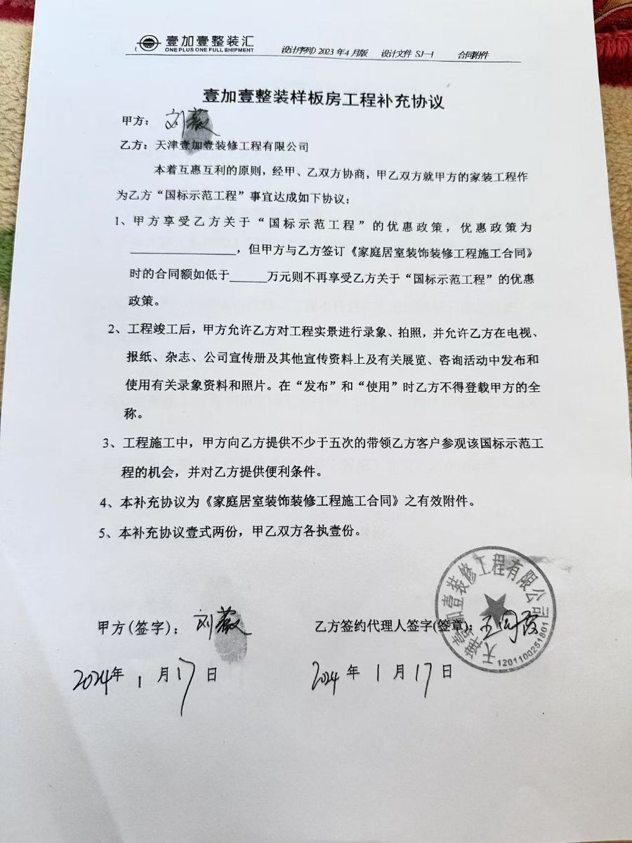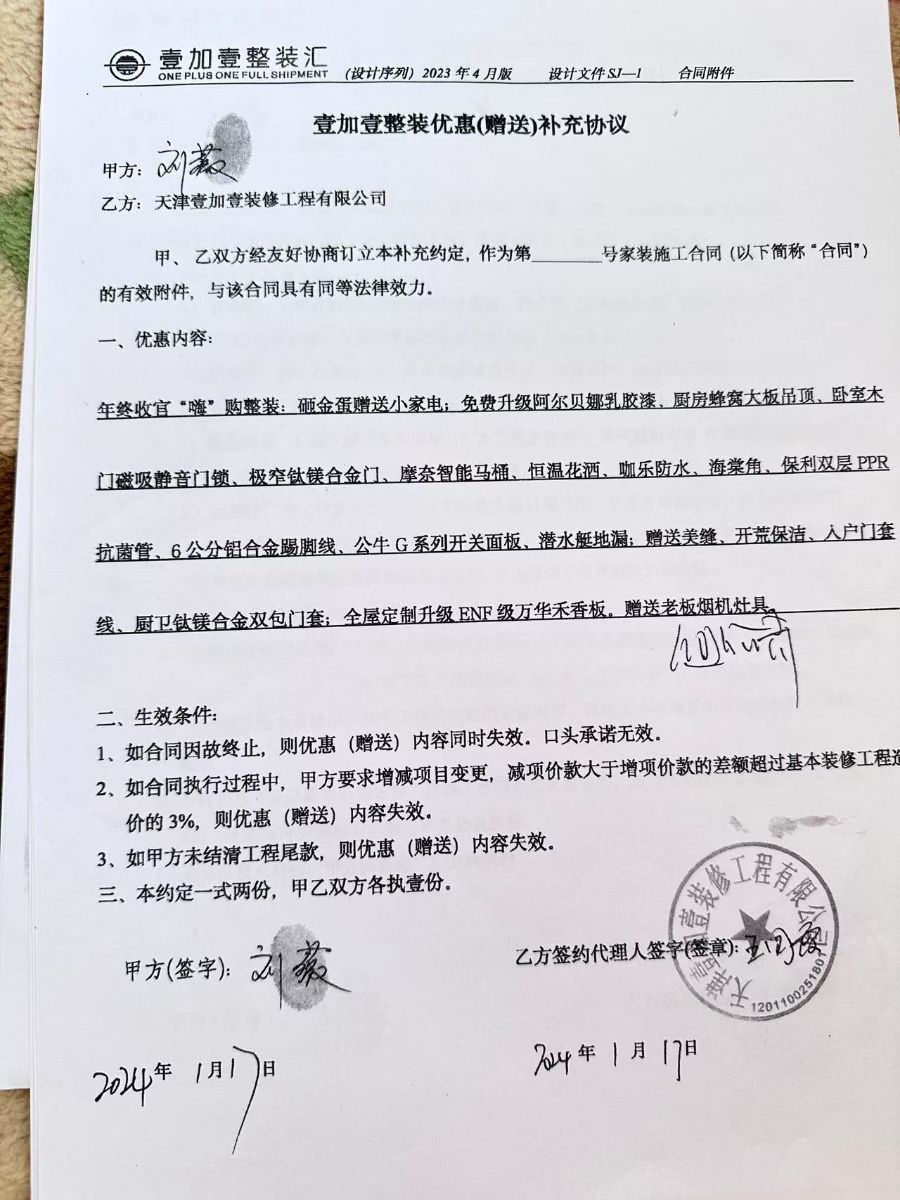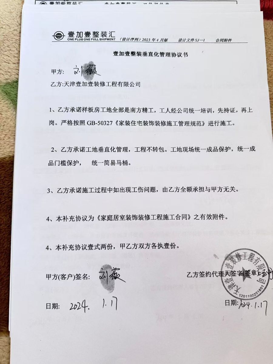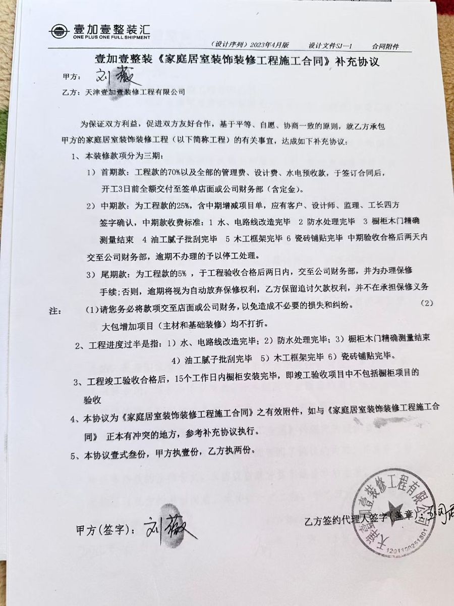 | 投訴類型 | 施工拖延 | 投訴人 | 劉** | 被投訴單位 | 天津市壹加壹整匯 |