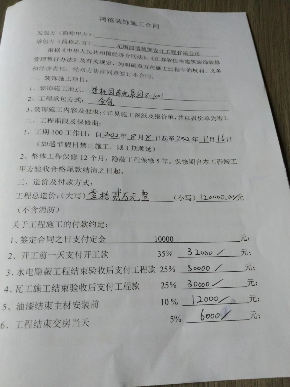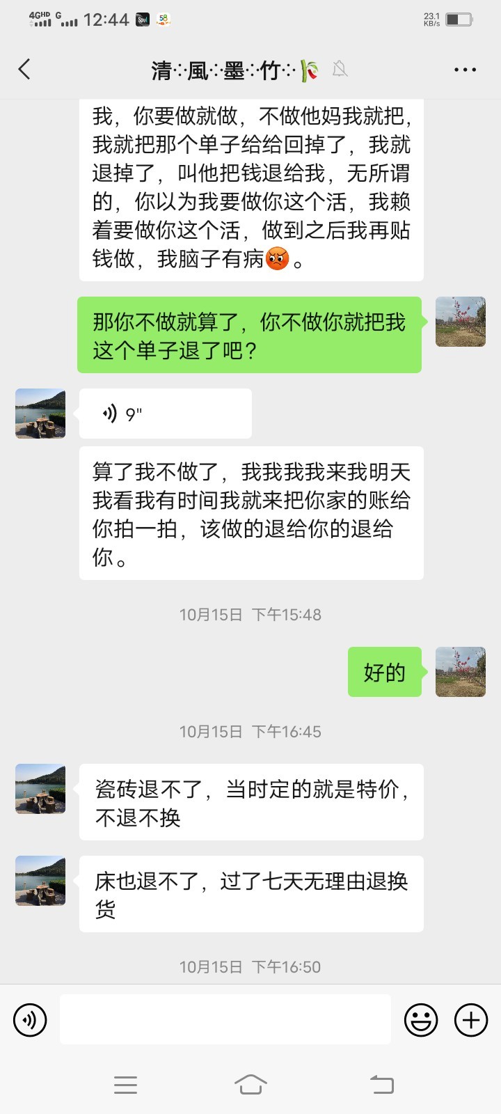 | 裝修面積 | 109m2 | 投訴人手機(jī) | 1386172**** | 被投訴人手機(jī) | 1380618**** |