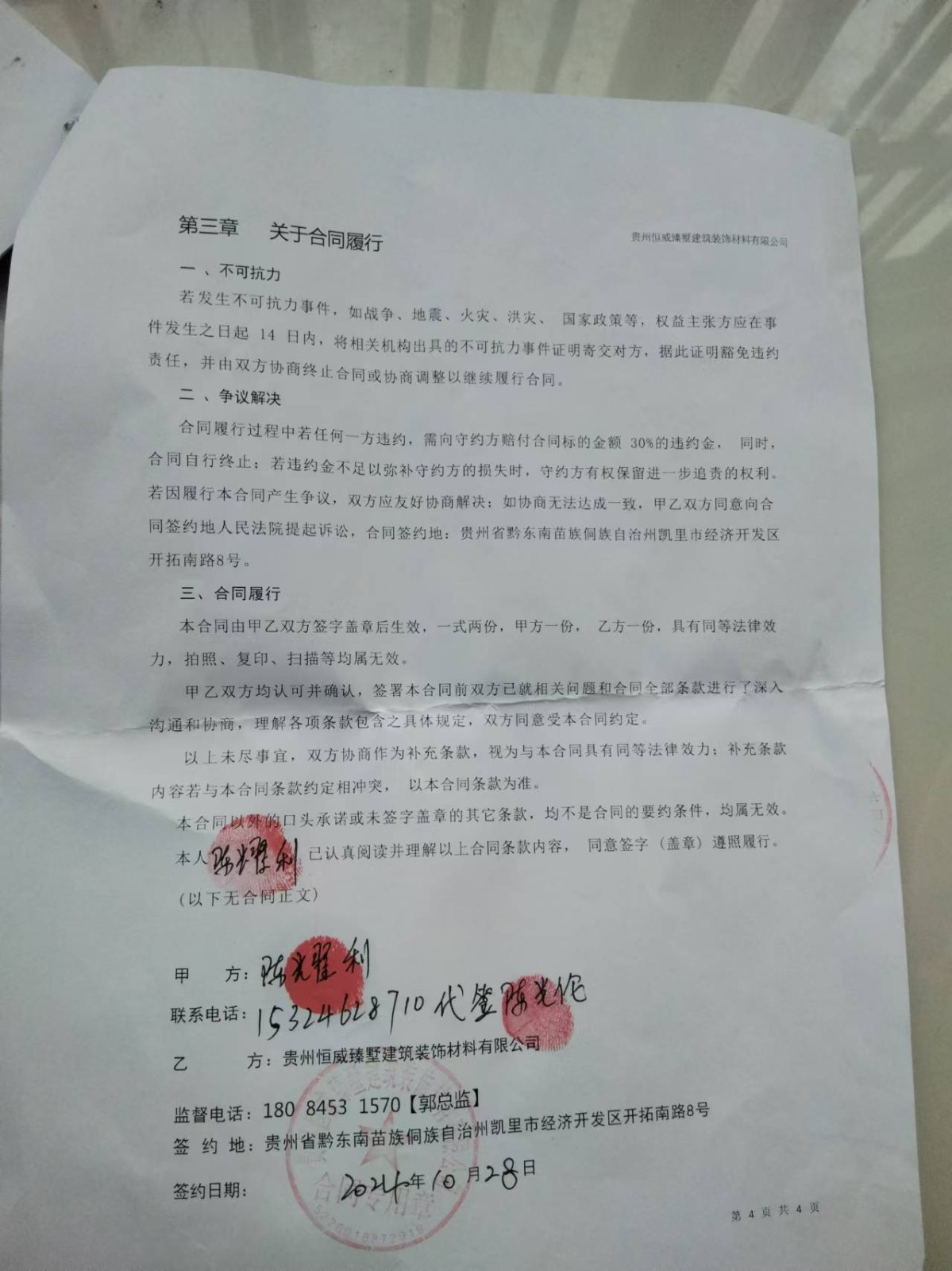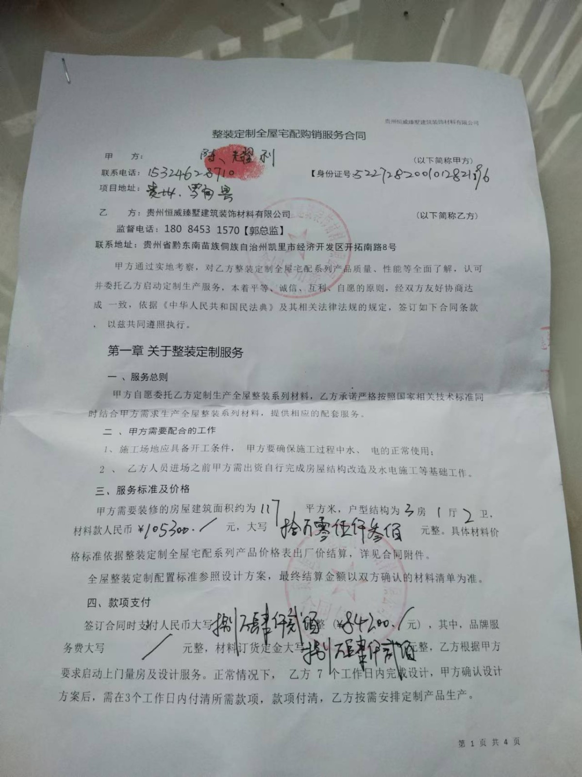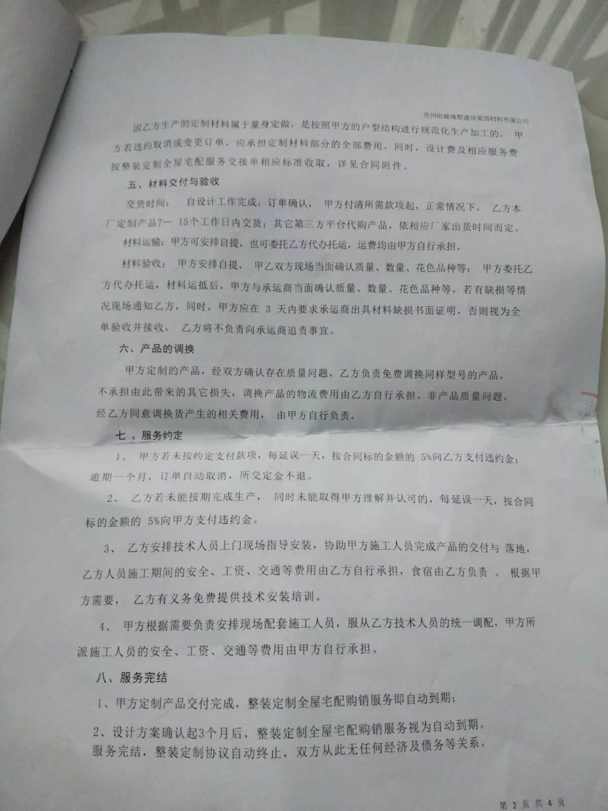 | 投訴類型 | 合同糾紛 | 投訴人 | 陳** | 被投訴單位 | 貴州恒威臻墅建筑裝飾材料有限公司 |
