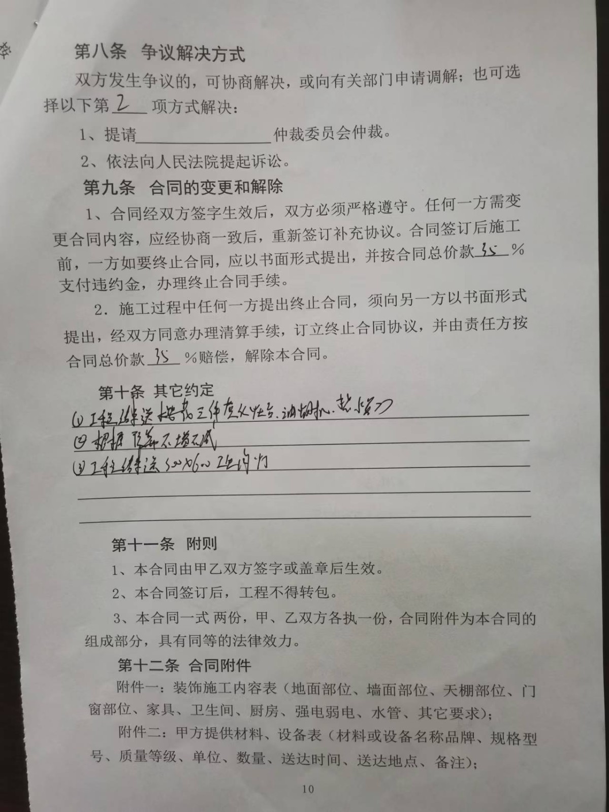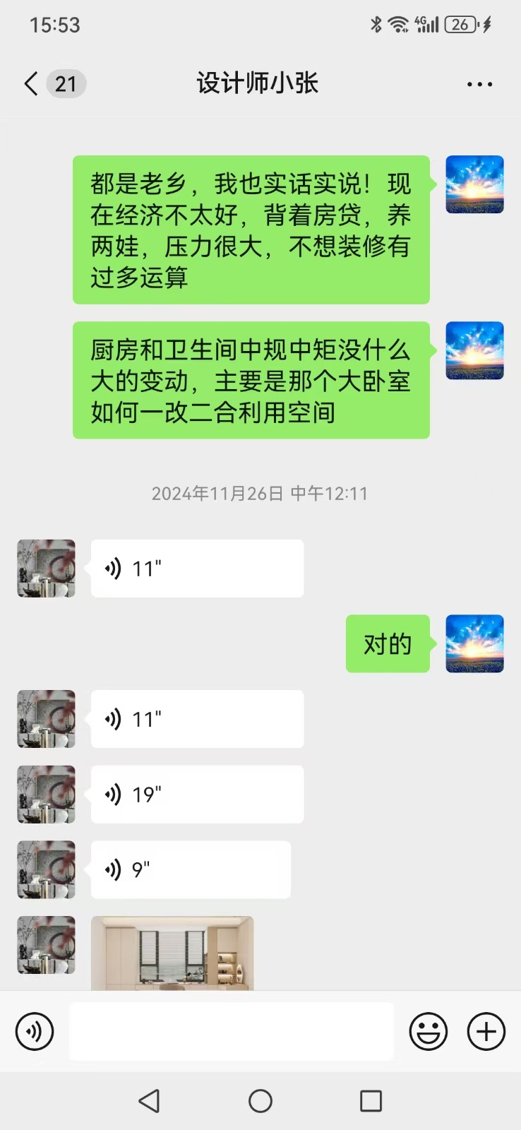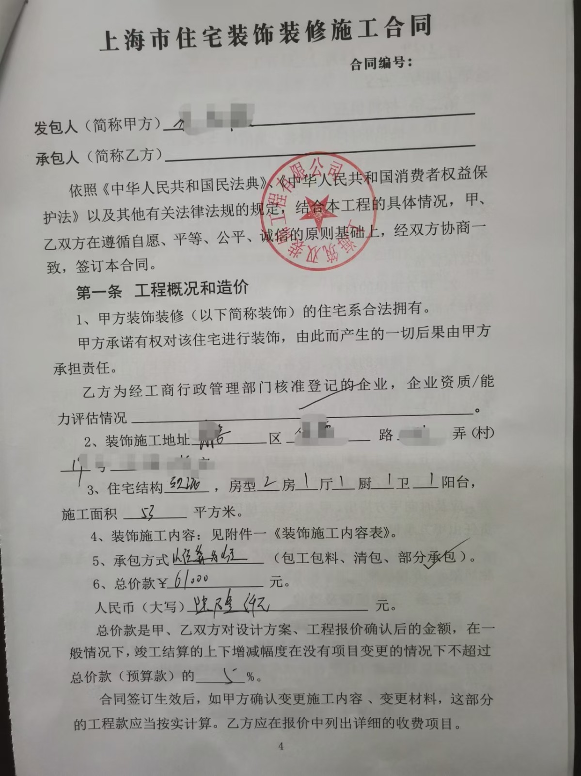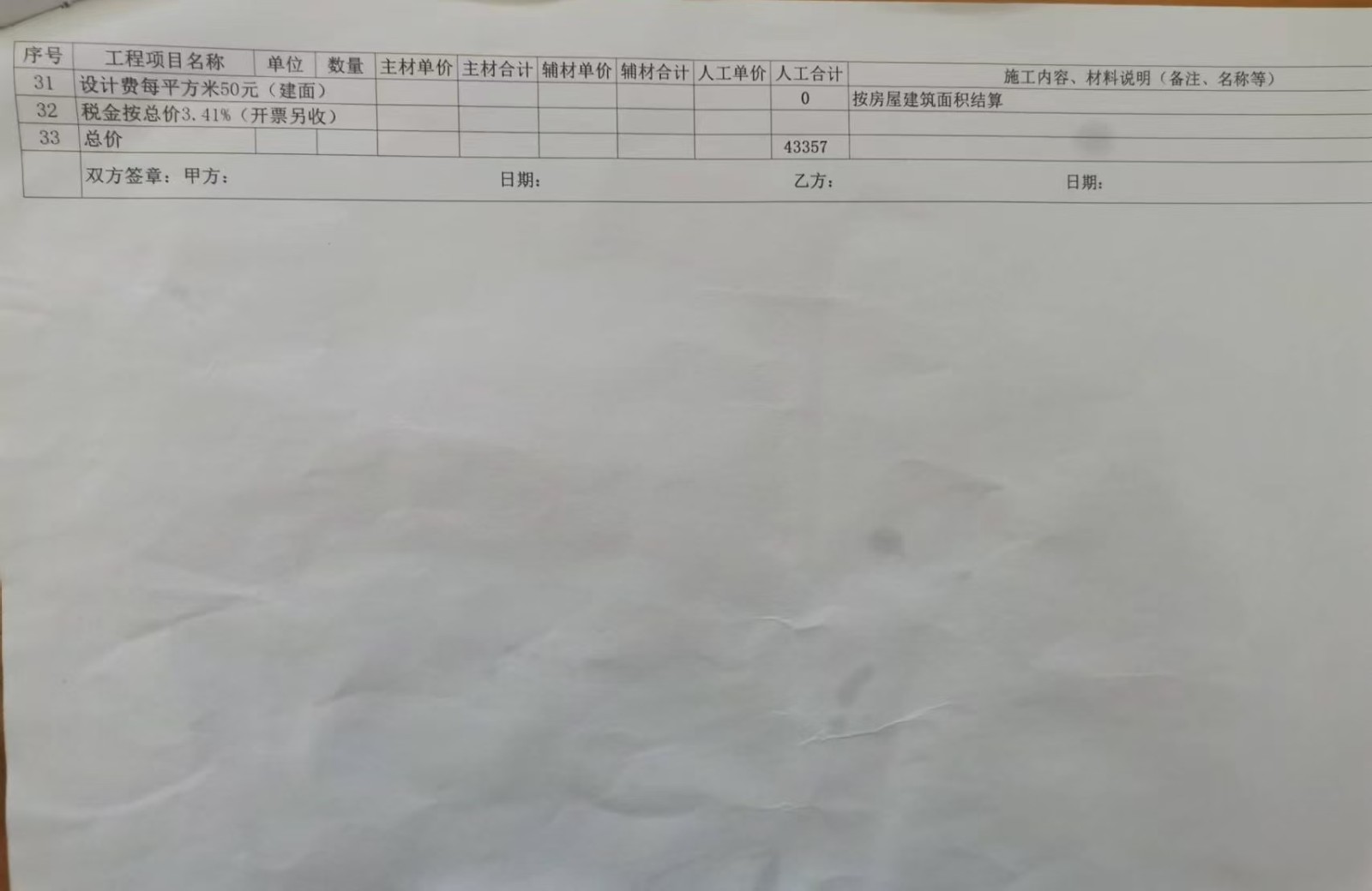 設(shè)計(jì)師張杭于2024年11月25日去我需要裝修的房子內(nèi),進(jìn)行了現(xiàn)場察看和測量,并現(xiàn)場再次溝通確定了在總裝修預(yù)算6萬以內(nèi)可以完成我的裝修需求,然后他給予了設(shè)計(jì)方案和報(bào)價(jià)單。前期的報(bào)價(jià)單里他說地板和板材不是很環(huán)保,因?yàn)榧依镉袃蓚€兒童,我們就升級了主材,最后報(bào)價(jià)單確定總價(jià)在61000元。 因剛貸款買房加上兩個寶寶需要撫養(yǎng),生活壓力比較大,我們對裝修的總預(yù)算一直都是比較謹(jǐn)慎的,多次和他確認(rèn)裝修過程中會不會材料不足,漏報(bào),損耗等產(chǎn)生其他費(fèi)用,他都明確回復(fù):后期的話不會產(chǎn)生任何費(fèi)用,你們只需要買點(diǎn)家具家電就能直接入住?;谒捌谟袉柋卮?、待人熱情,我們對他產(chǎn)生了百分之百的信任,并于2024年11月30日晚到他店里簽了裝修合同(他說這個合同是全市統(tǒng)一的,不用看,相信我就對了,這個價(jià)格一定給你們裝修的好好的,年前能完工90%,定制的柜門和移門可能需要年后完工,作為裝修小白的我們,基于看也看不懂的心理,就直接簽了字。)
