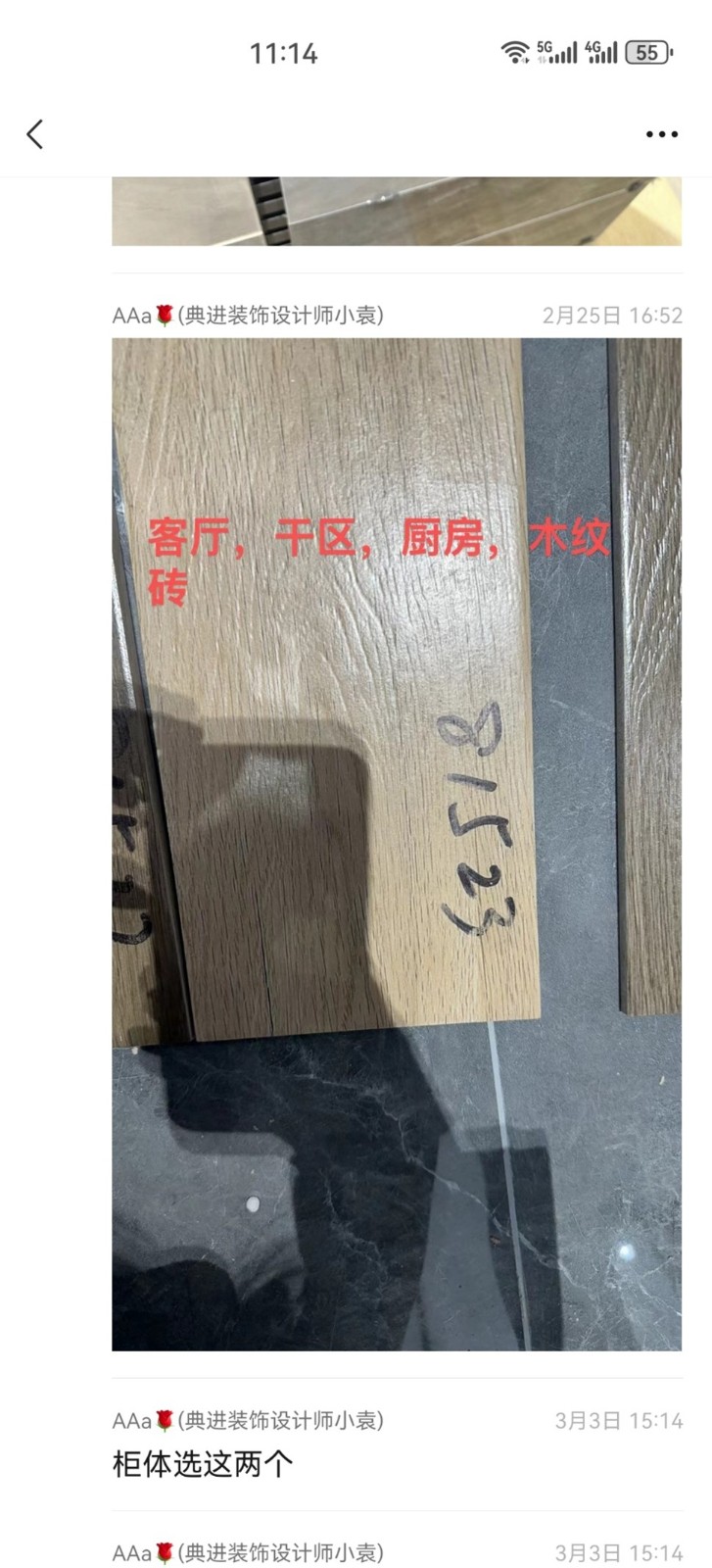 后來泥工施工時(shí)去過幾次,攀談了解到典進(jìn)把活分包給小工頭陸某鵬,工頭又找相熟師傅干活。師傅一直跟我投訴沒材料了,活干不下去。我反饋給項(xiàng)目經(jīng)理被答復(fù)讓我找公司催材料,而且還一直跟我強(qiáng)調(diào)設(shè)計(jì)方案上的面積不夠沒瓷磚要加錢;我也服了房子你們量的圖紙你們出的、預(yù)算你們滾的最后跟我說不夠;瓷磚可能拖了一周左右典進(jìn)配送了繼續(xù)施工;然后泥工完工后安排驗(yàn)收,我委托了監(jiān)理幫我驗(yàn)收,監(jiān)理對瓷磚空鼓驗(yàn)收說沒問題;然后他們又開始給我算錢瓷磚費(fèi)啥的,關(guān)鍵給我的地磚效果圖是統(tǒng)一的原木色,做出來的成品竟然全是亂紋的樹疤地板,地板還沒排列。這家公司已經(jīng)徹底讓我無語,到現(xiàn)在隨意更換瓷磚問題還沒解決;